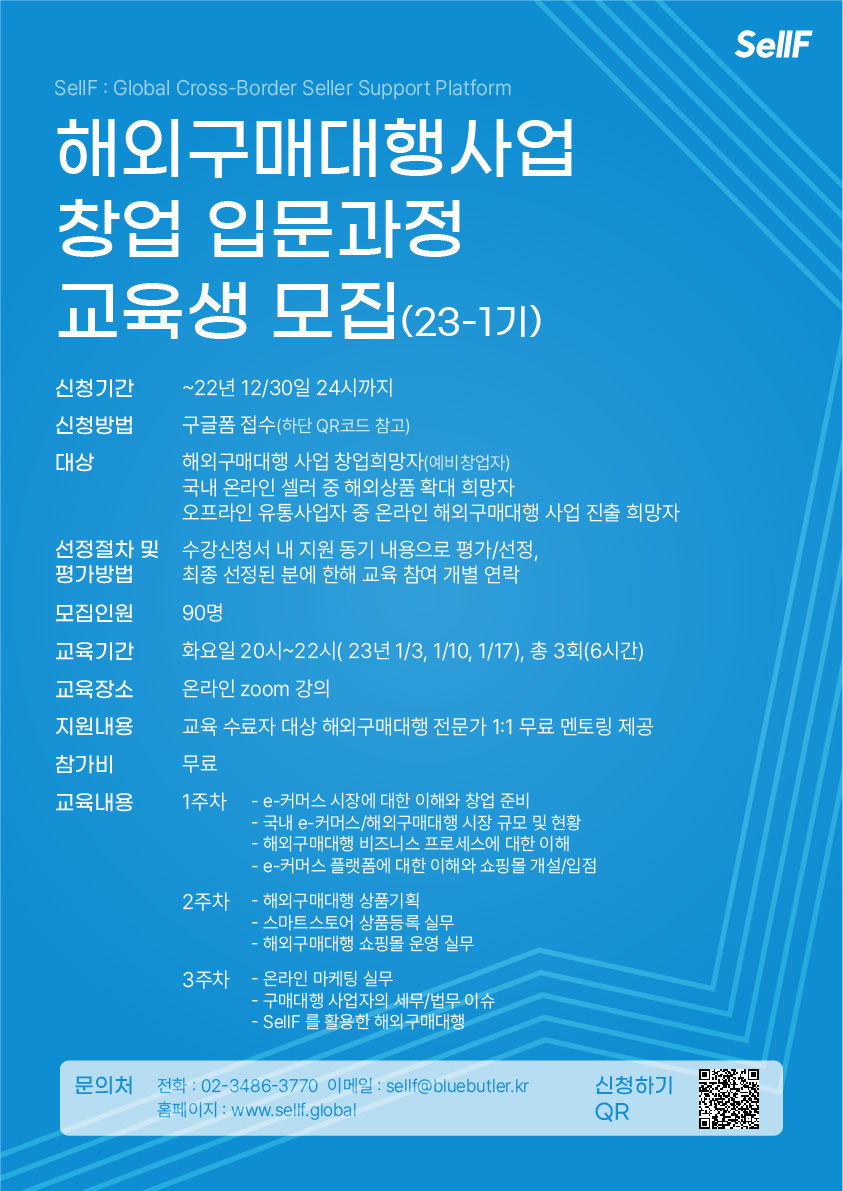 - 원스탑 구매대행 셀러지원 서비스 SellF(www.sellf.global) 서비스 이용시 수수료 1개월 50% 할인 -
