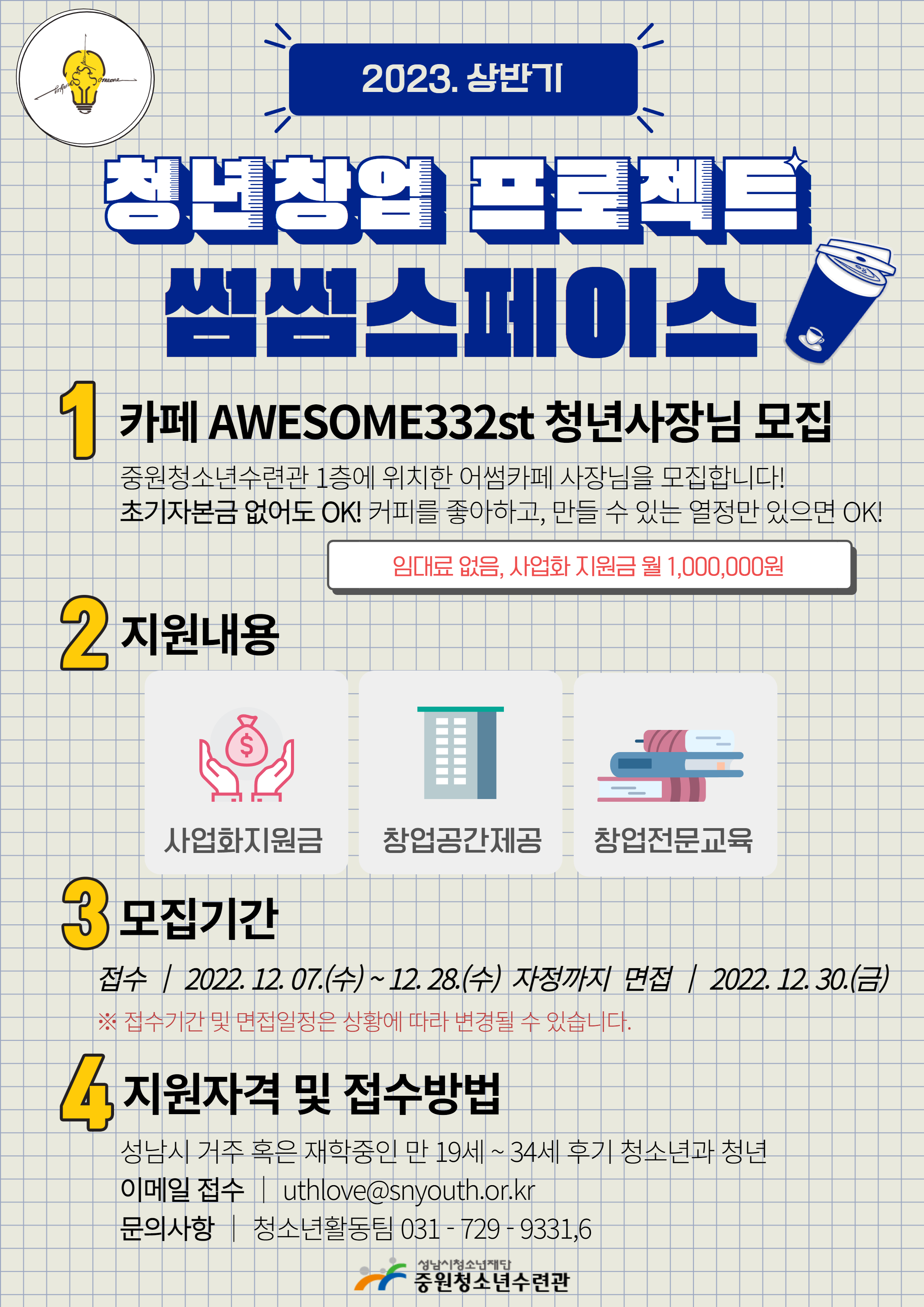 메일제목: [썸썸플레이스/카페창업] 팀명_대표자이름으로 작성해서 보내주세요 -