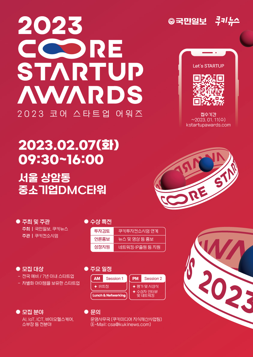 ▶ 주소 : 서울시 마포구 월드컵북로 400 서울산업진흥원 7층 쿠키뉴스 코어 스타트업 어워즈 담당자