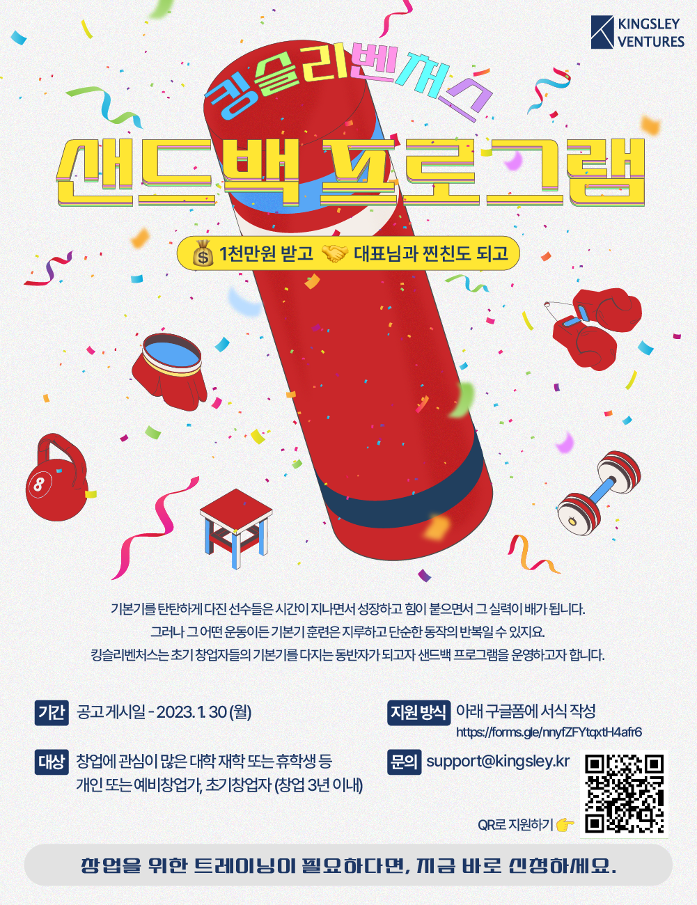 신청 시 요청하는 정보(개인정보포함)는 킹슬리벤처스에서 관리되오니 이점 반드시 유의하여 주시기 바랍니다.