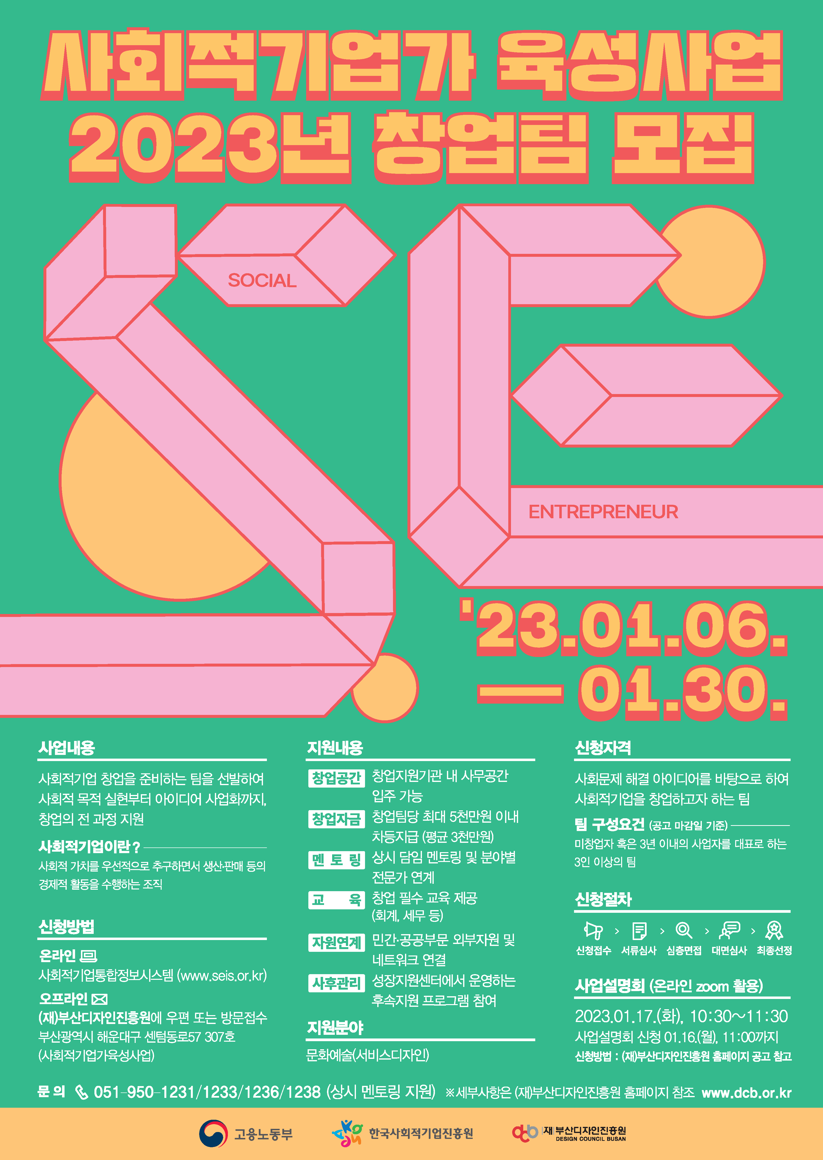 (재)부산디자인진흥원 사회서비스디자인팀 사회적기업가 육성사업 담당자