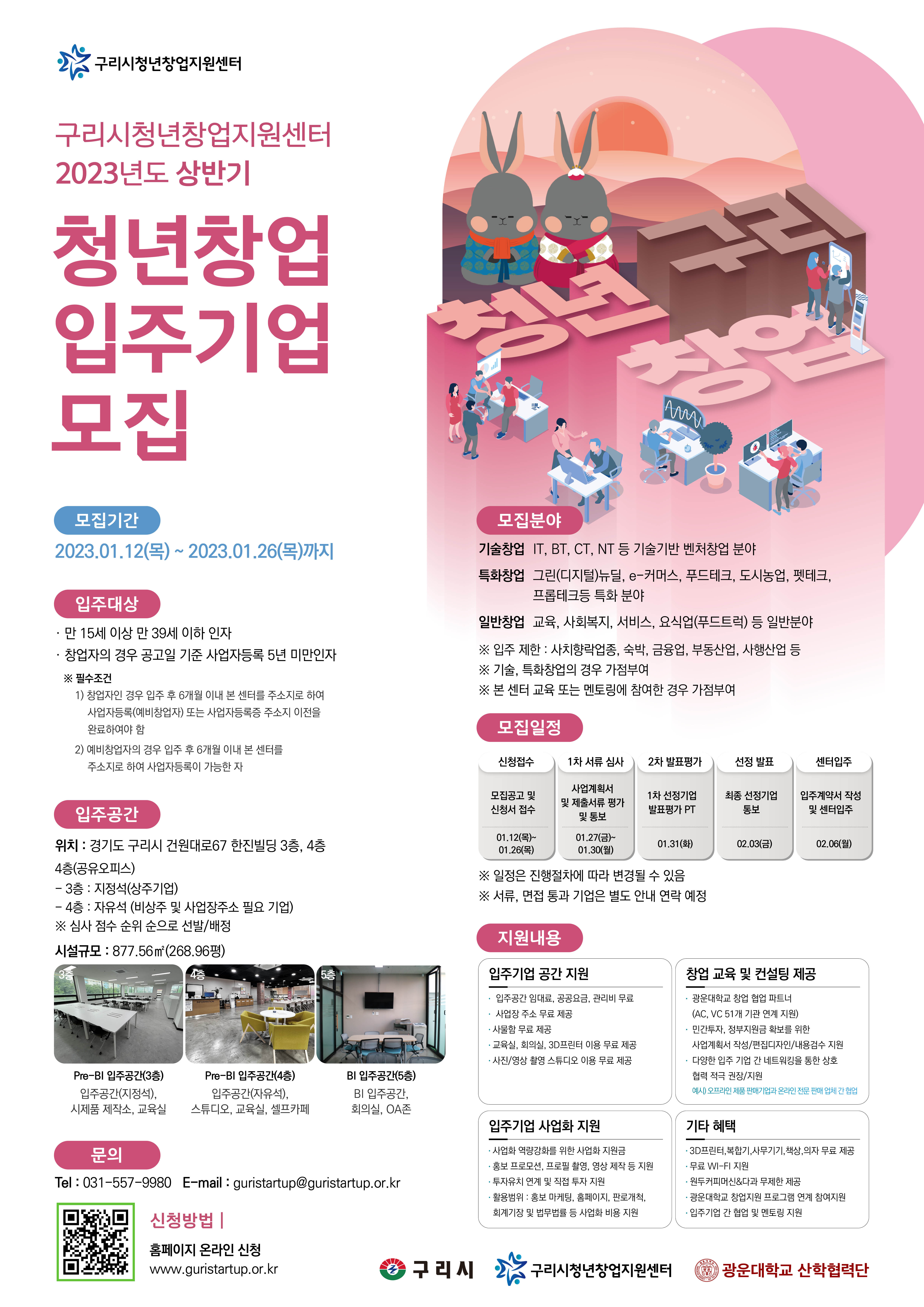 - 입주 공간 임대료, 공공요금, 관리비 무료