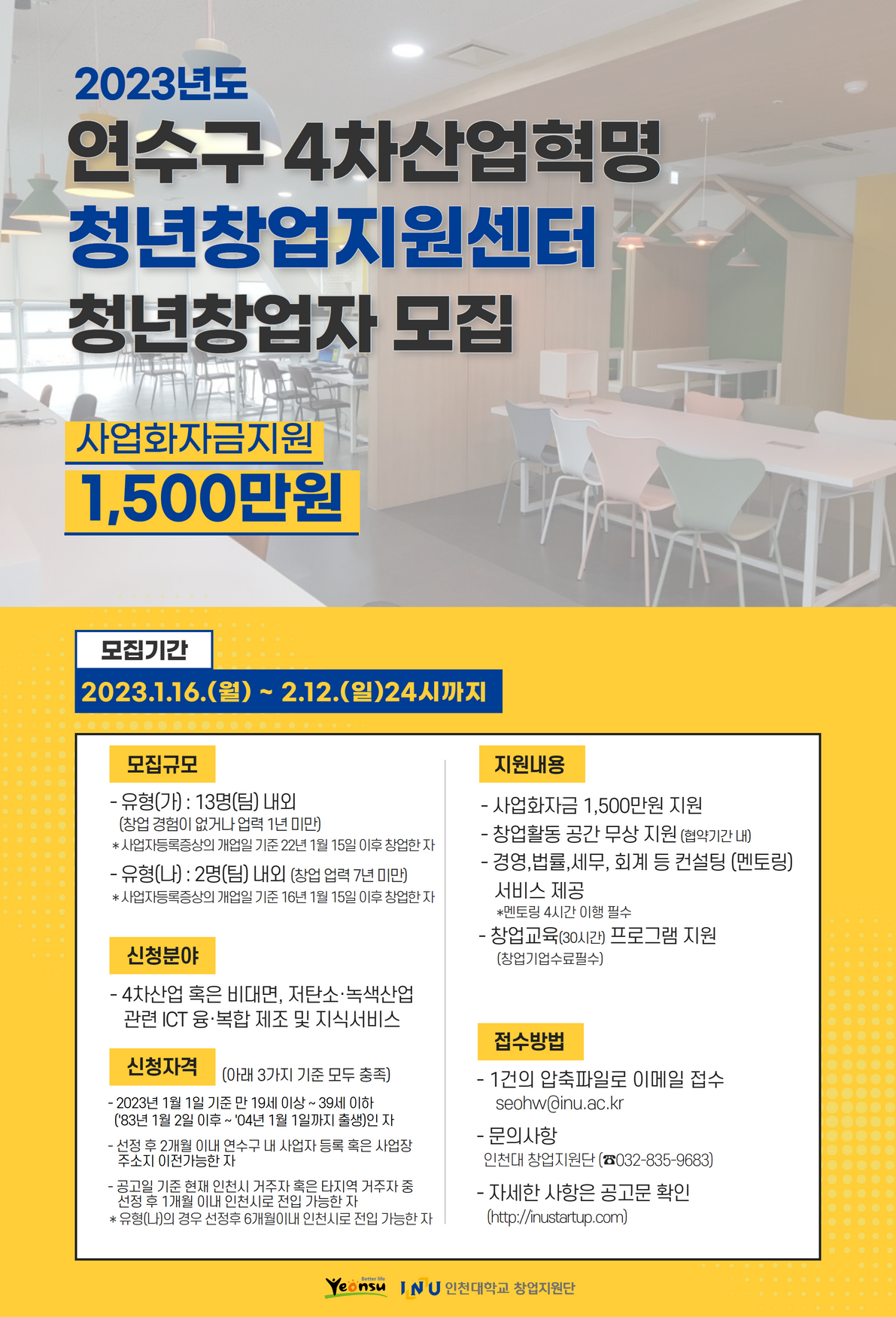 - 선정기준 : 창업아이템의 실현가능성, 사업성, 기술성, 창업자 역량,