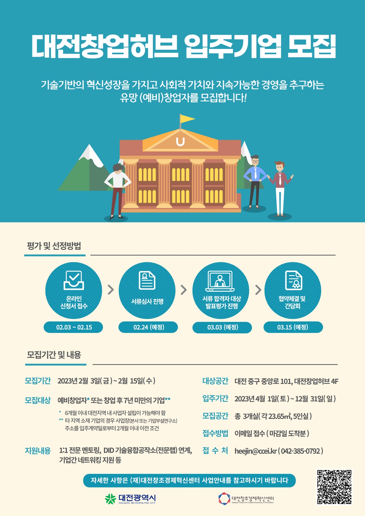 - 대전광역시 중구 중앙로 101 (선화동) 대전창업허브 4층