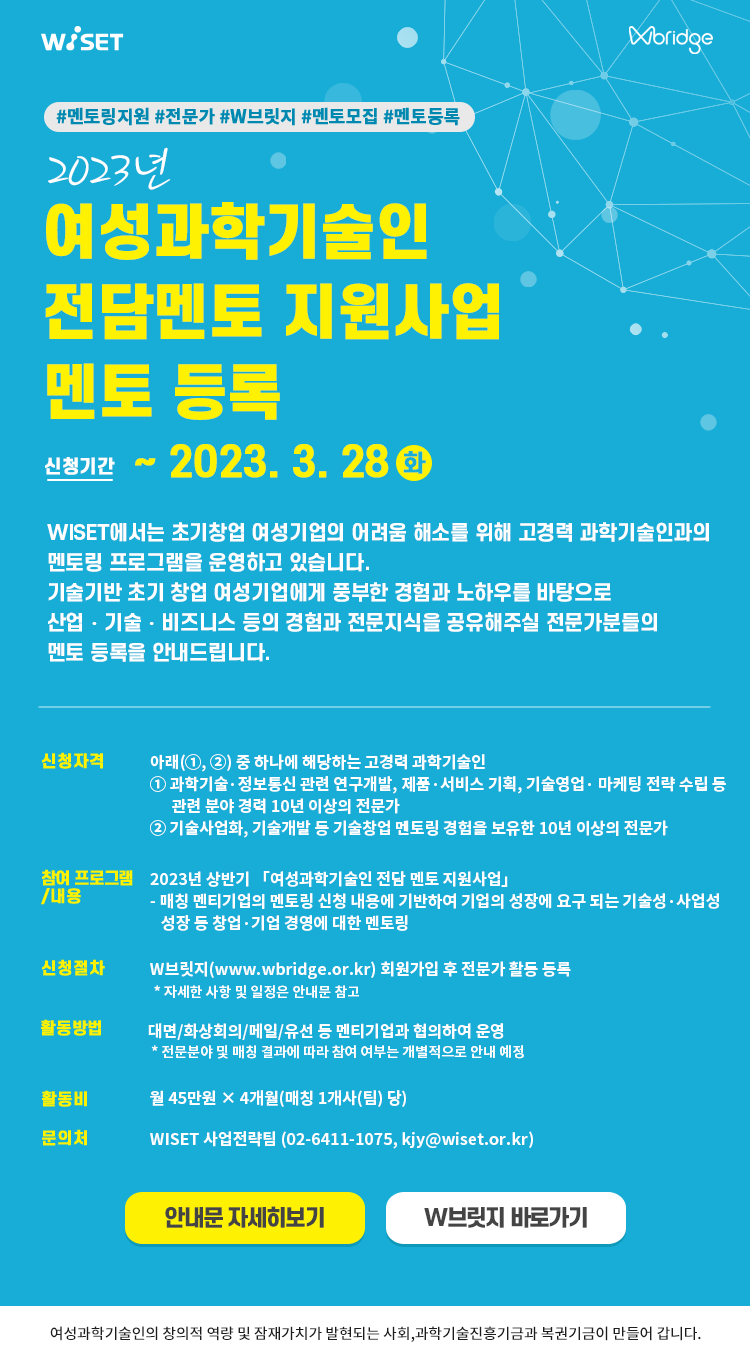 - (사 업 명) 2023년 상반기「여성과학기술인 전담 멘토 지원사업」