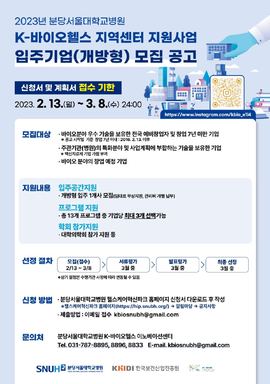 2. 소재지 : 분당서울대학교병원 헬스케어혁신파크 6층 K-바이오헬스 이노베이션 센터(경기도 성남시 분당구 돌마로 172)