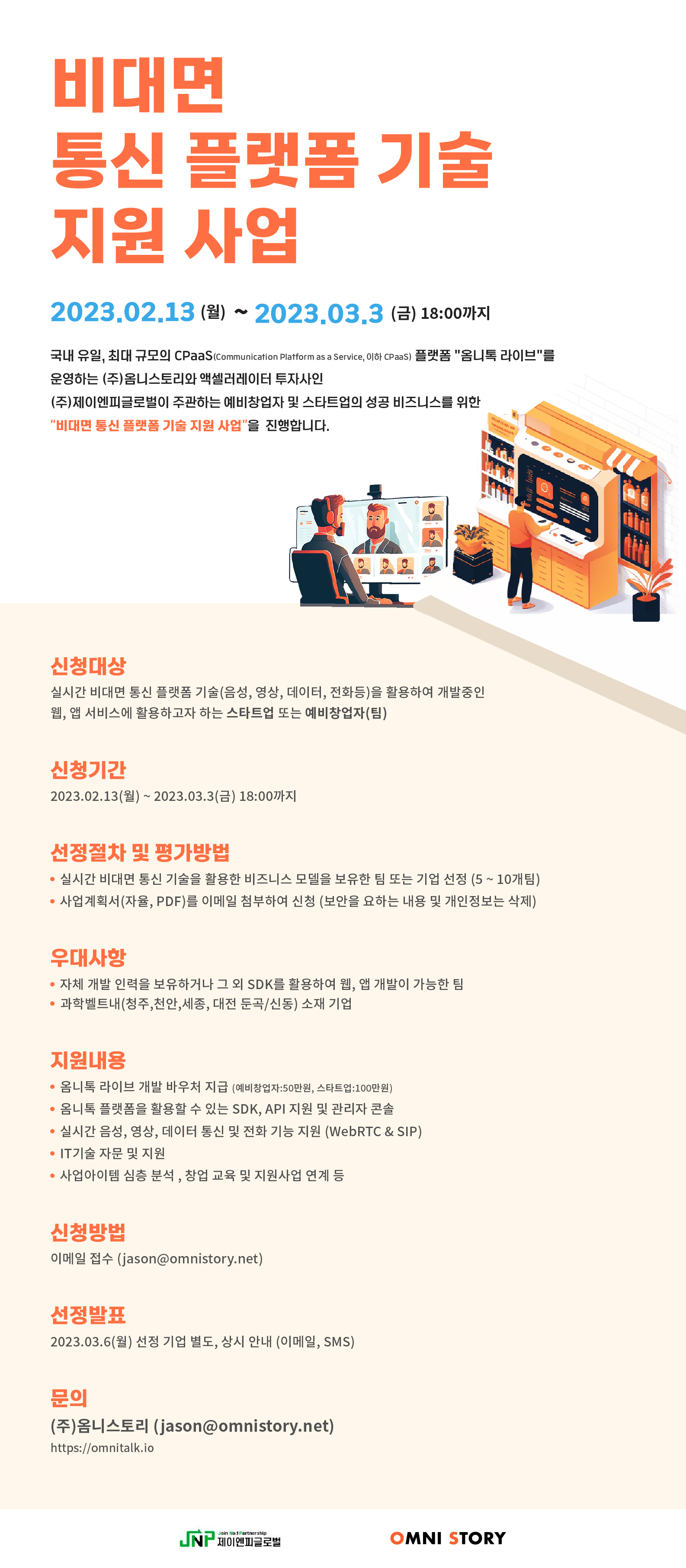 - 옴니톡 라이브 개발 바우처 지금 (예비창업자: 50만원, 스타트업: 100만원)