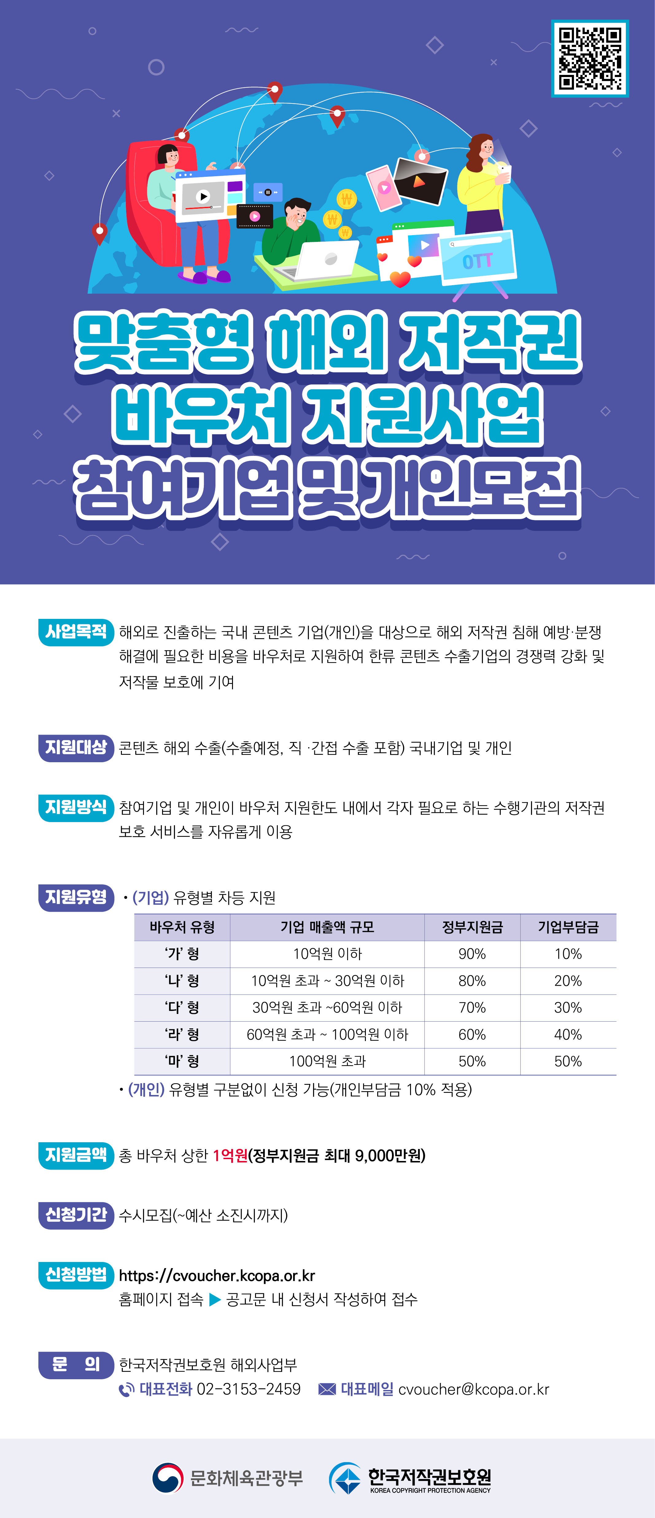 해외 저작권 침해 예방·분쟁 해결에 필요한 비용을 바우처로 지원