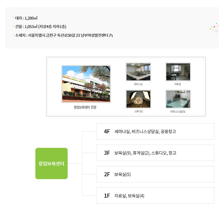 ◦ 센터 소재지 : 서울특별시 금천구 독산로 50길 23 남부여성발전센터 內