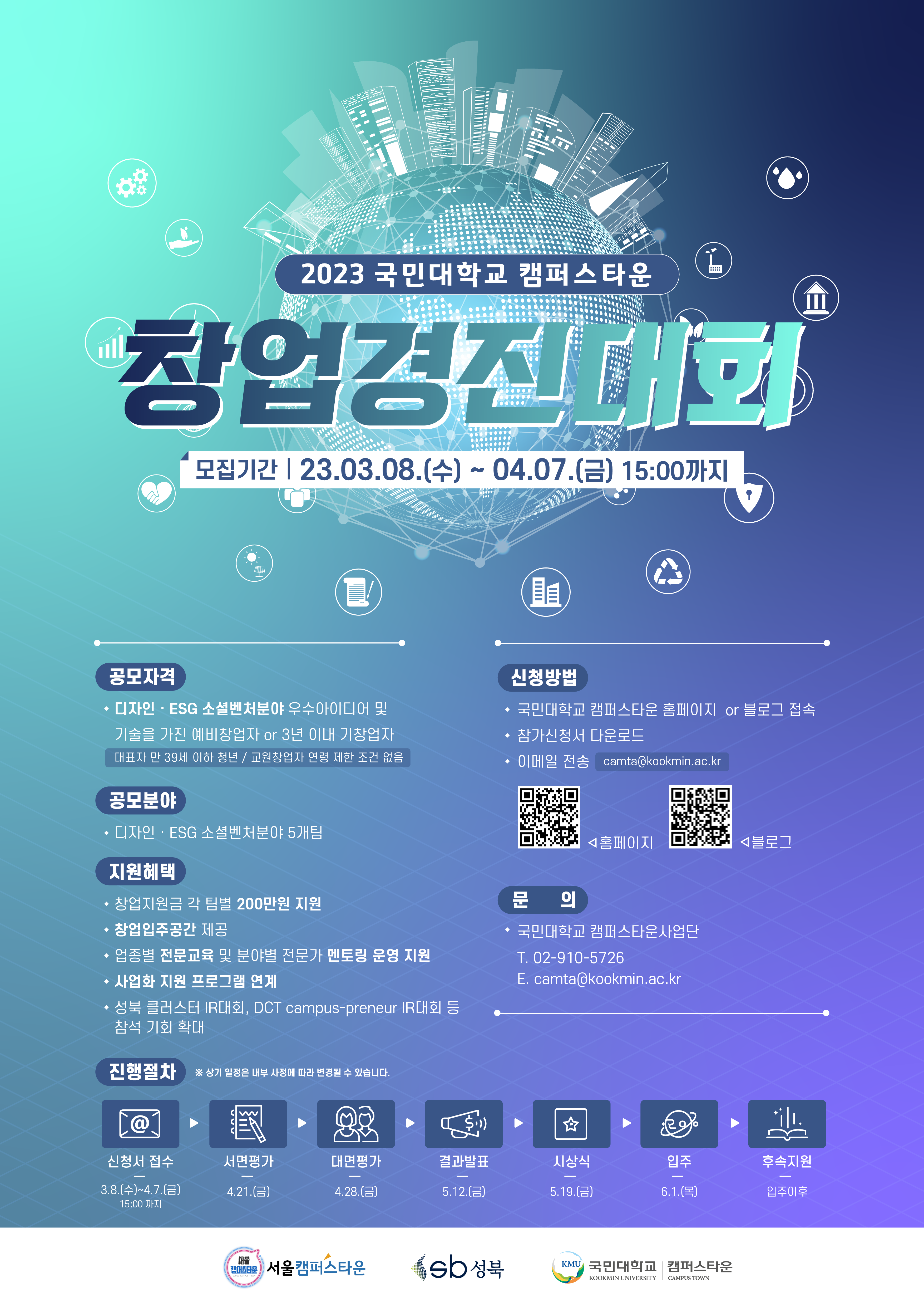 ※ 입주 후 평가에 제출한 사업계획서 상의 사업을 실제 운영하는 사업자를 기준으로 국민대학교 캠퍼스타운 창업공간(제로원디자인센터)에 사업자등록을 해야 함. -