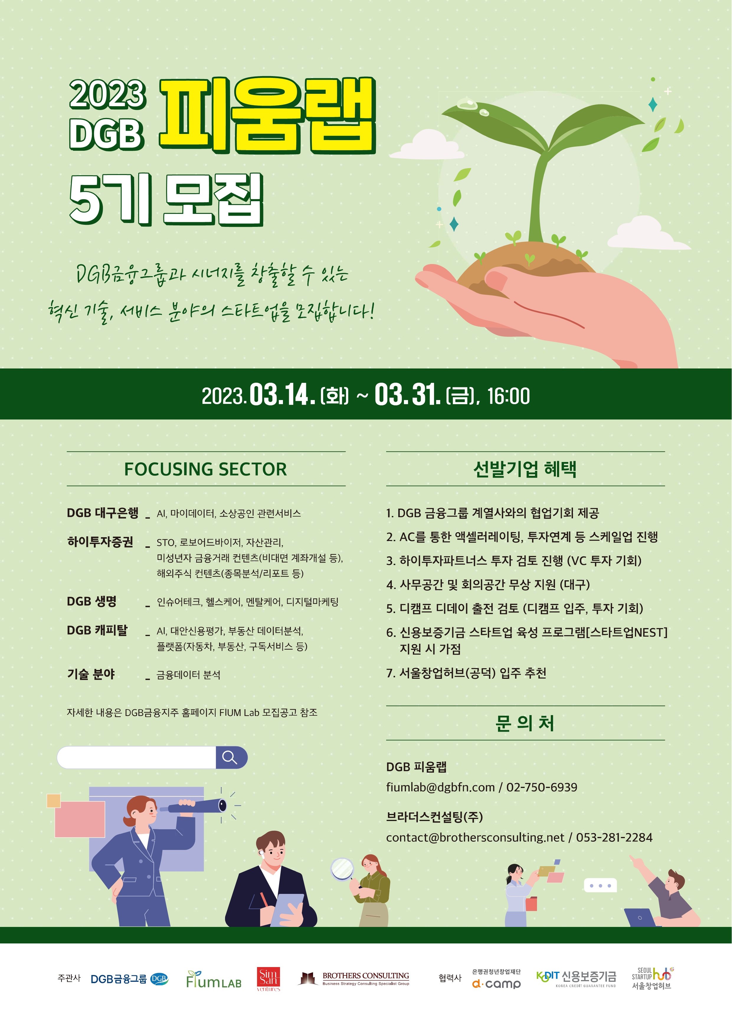 DGB금융그룹 피움랩(FIUM lab) 5기 스타트업 모집