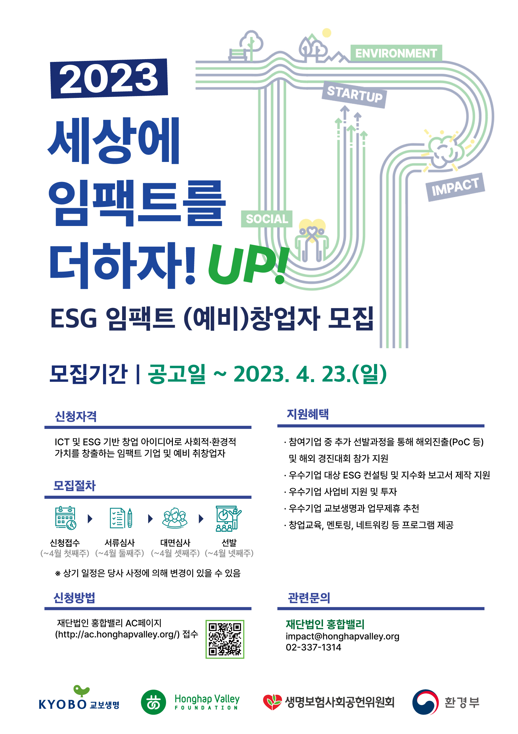 ICT 및 ESG 기반 창업 아이디어로 사회적·환경적 가치를 창출하는 임팩트 기업 및 예비 취창업자