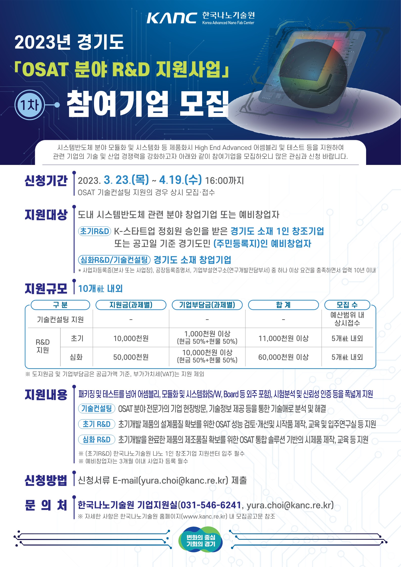 「2023년 경기도 시스템반도체 OSAT(Outsourced Semiconductor Assembly and Test) 분야 R&D 지원 사업」 1차 참여기업 모집 공고