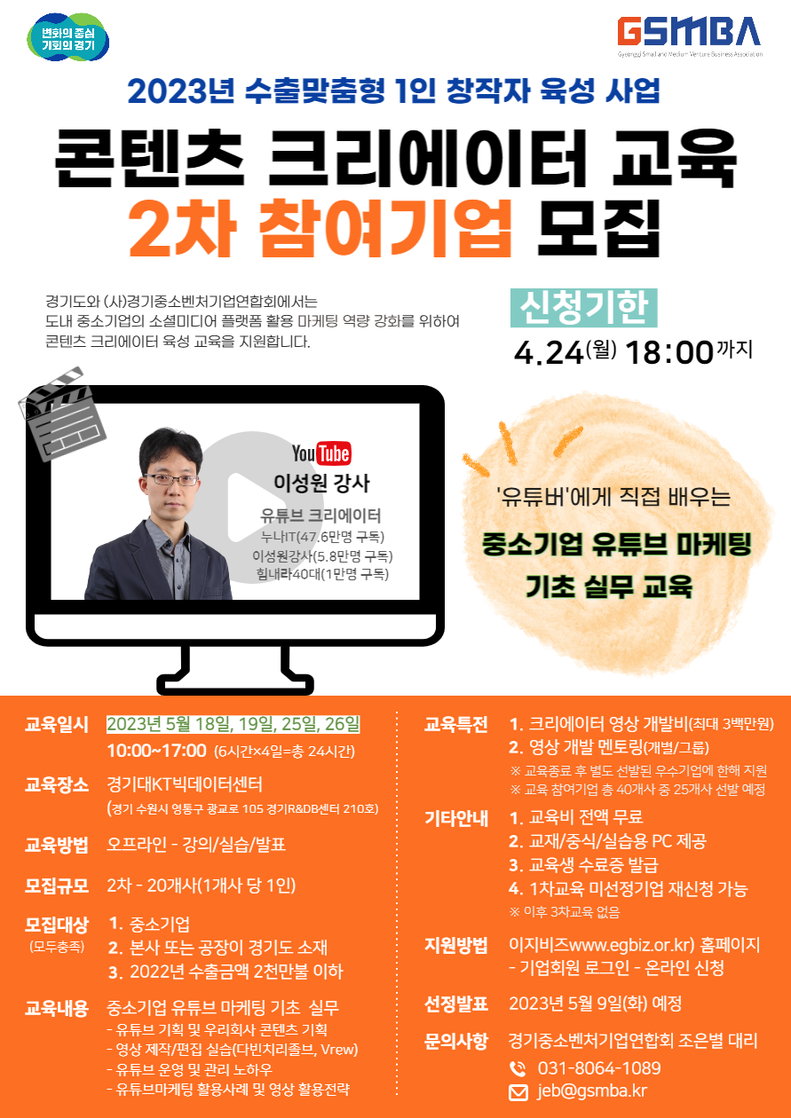 중소기업 유튜브마케팅 기초 실무교육 지원