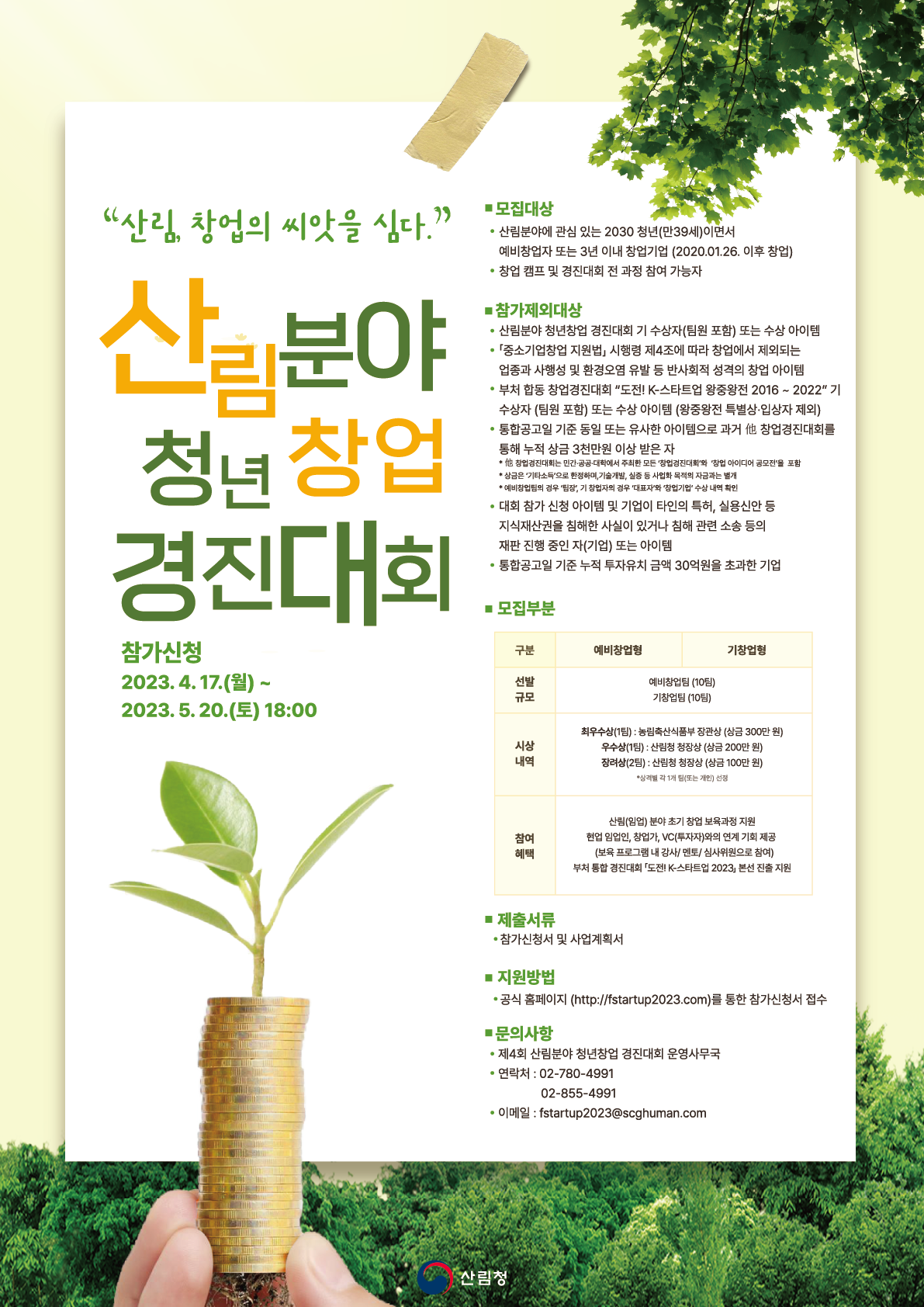 -산림분야에 관심 있는 2030 청년(만39세)이면서 예비창업자 또는 3년 이내 창업기업(2020.01.26. 이후 창업)