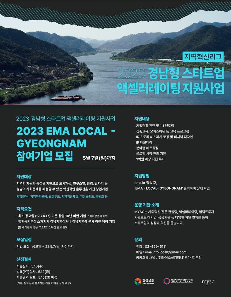 2023 경남형 스타트업 액셀러레이팅 지원사업 참여기업 모집 (~5/7 일요일 자정까지)