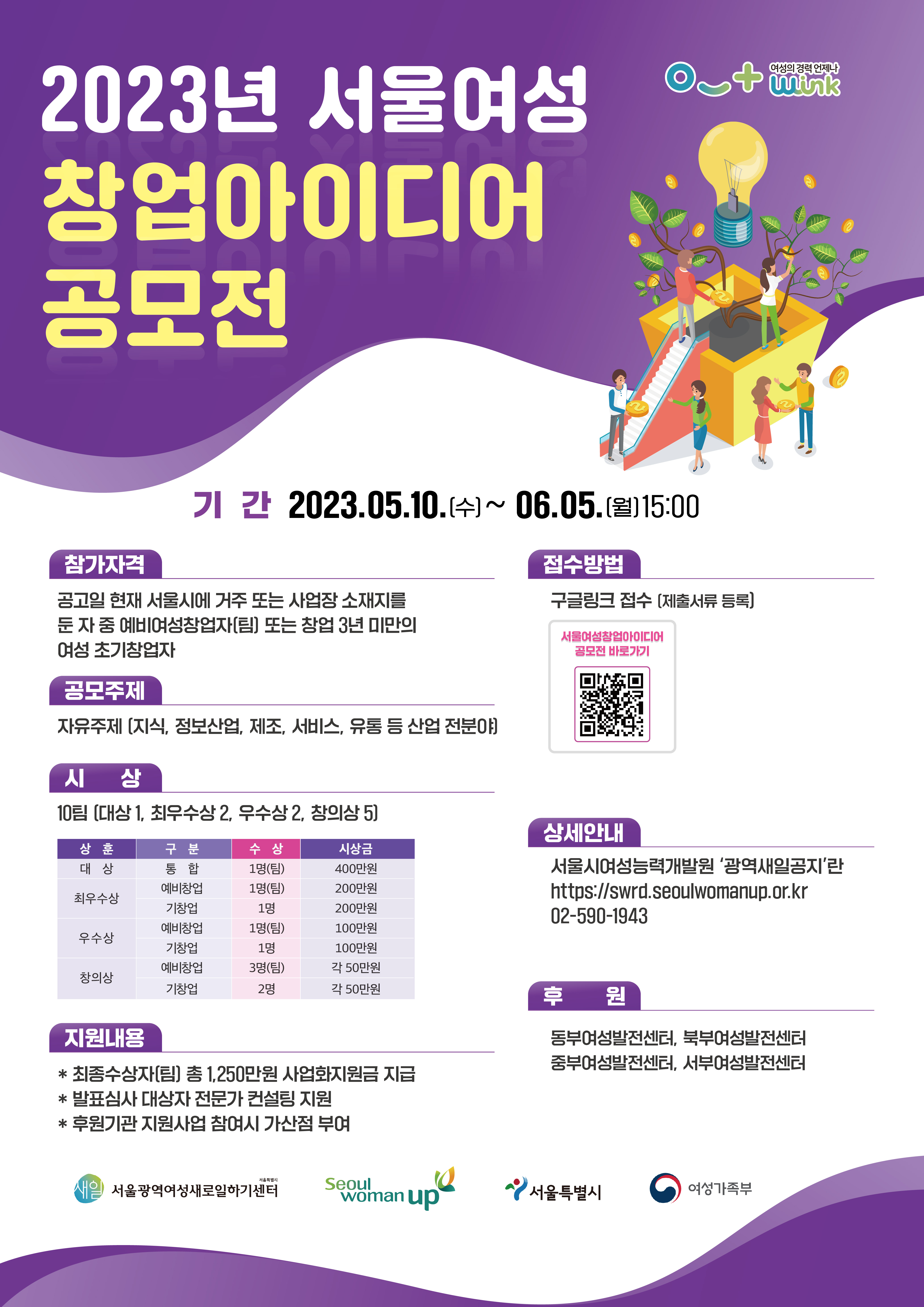 - 팀원 수는 제한 없으나 팀 대표는 반드시 서울시 소재 여성이어야 하며 60% 이상이 여성이어야 함 -