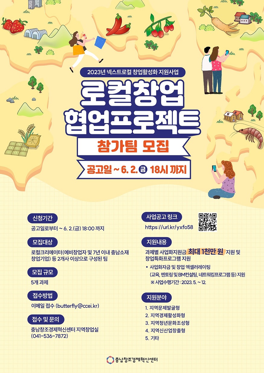 로컬크리에이터 등 2개사 이상으로 구성 된 팀(예비창업자 및 7년이내 충남소재 창업기업)