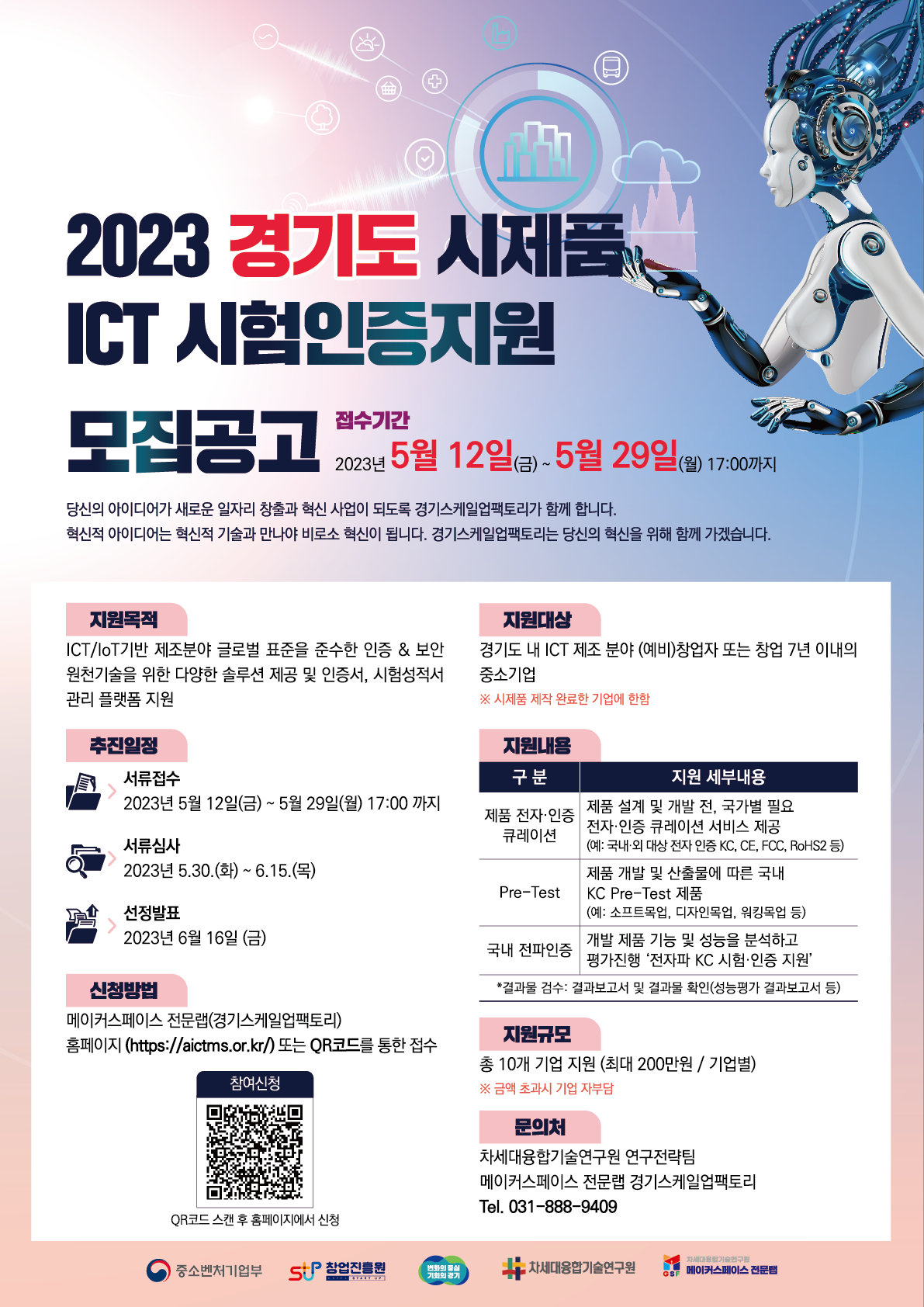 - 경기도 내 ICT 제조 분야 (예비)창업자 또는 창업 7년 이내의 중소기업