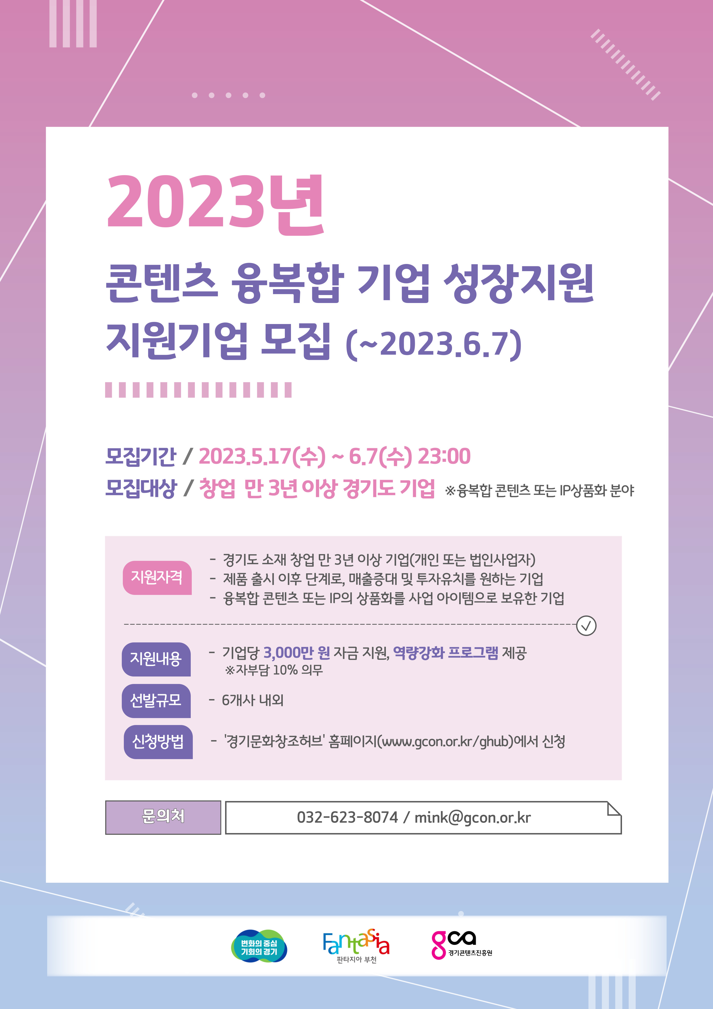 경기콘텐츠진흥원 서부권역센터(032-623-8074/mink@gcon.or.kr)
