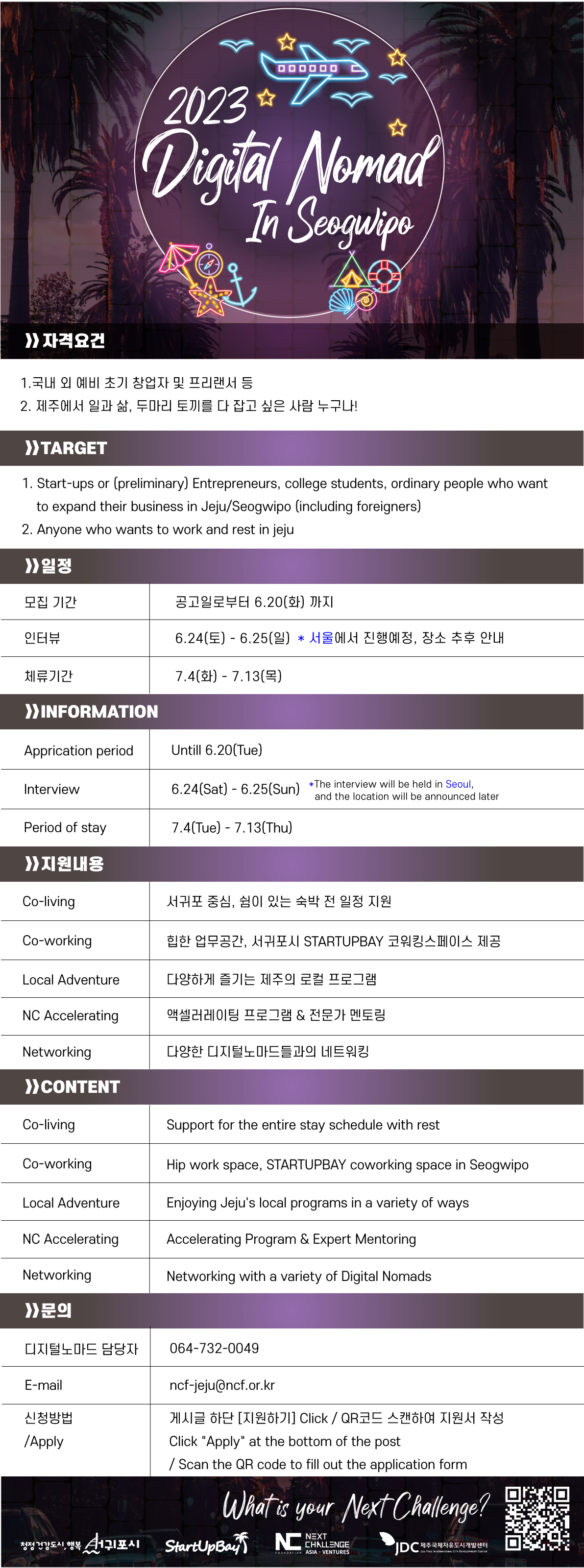 • 제주에서 사업을 확장하고자 하는 스타트업 종사자 또는 (예비)창업자, 프리랜서, 대학생, 일반인, 외국인 누구나!