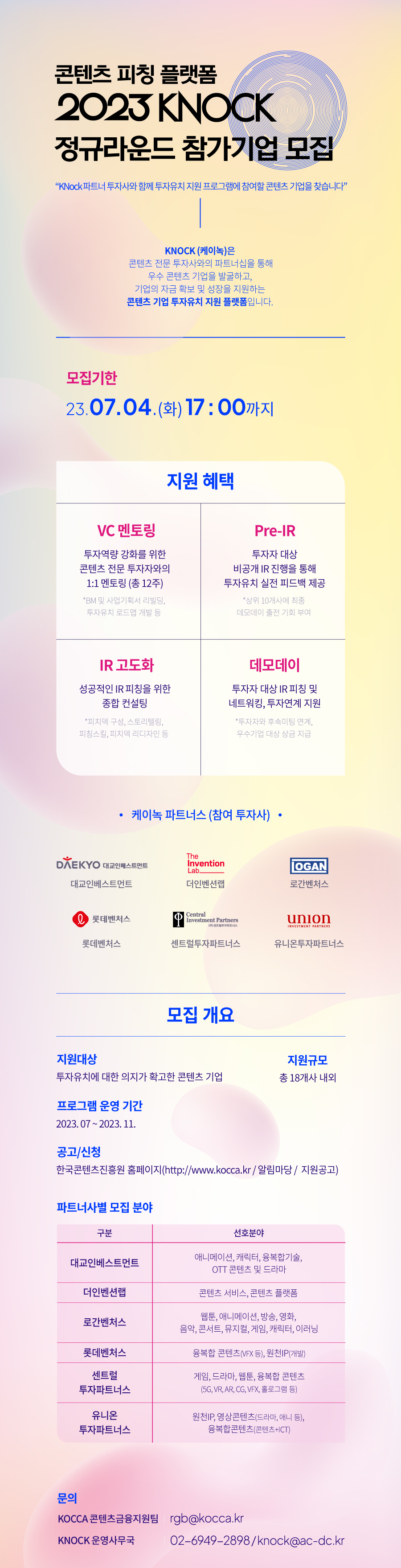 2023 콘텐츠 피칭 플랫폼 케이녹(KNock) 정규라운드