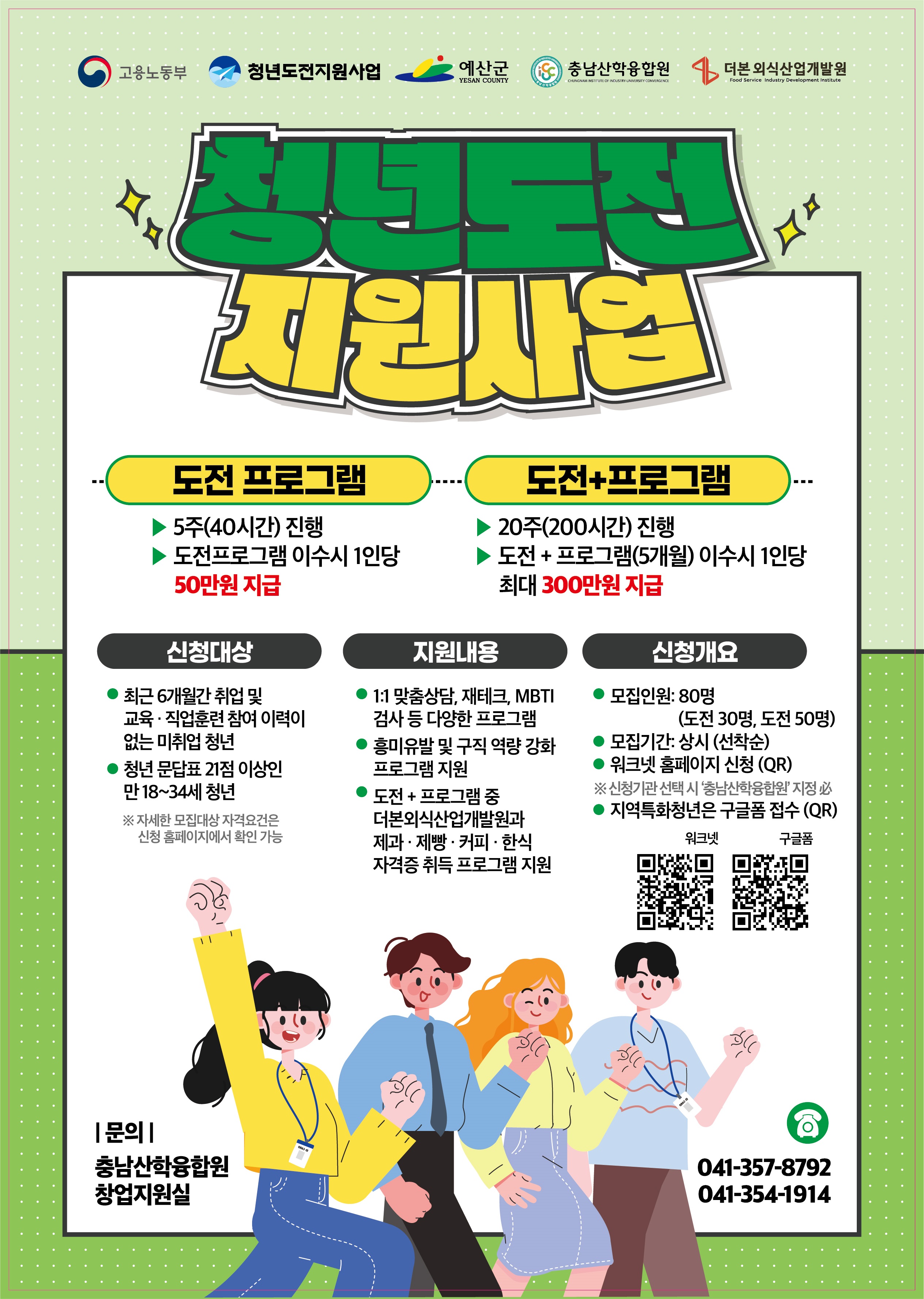 (신청자격 1~4) 위크넷 접수 ☞ https://www.work.go.kr/youngChallenge/index.do
