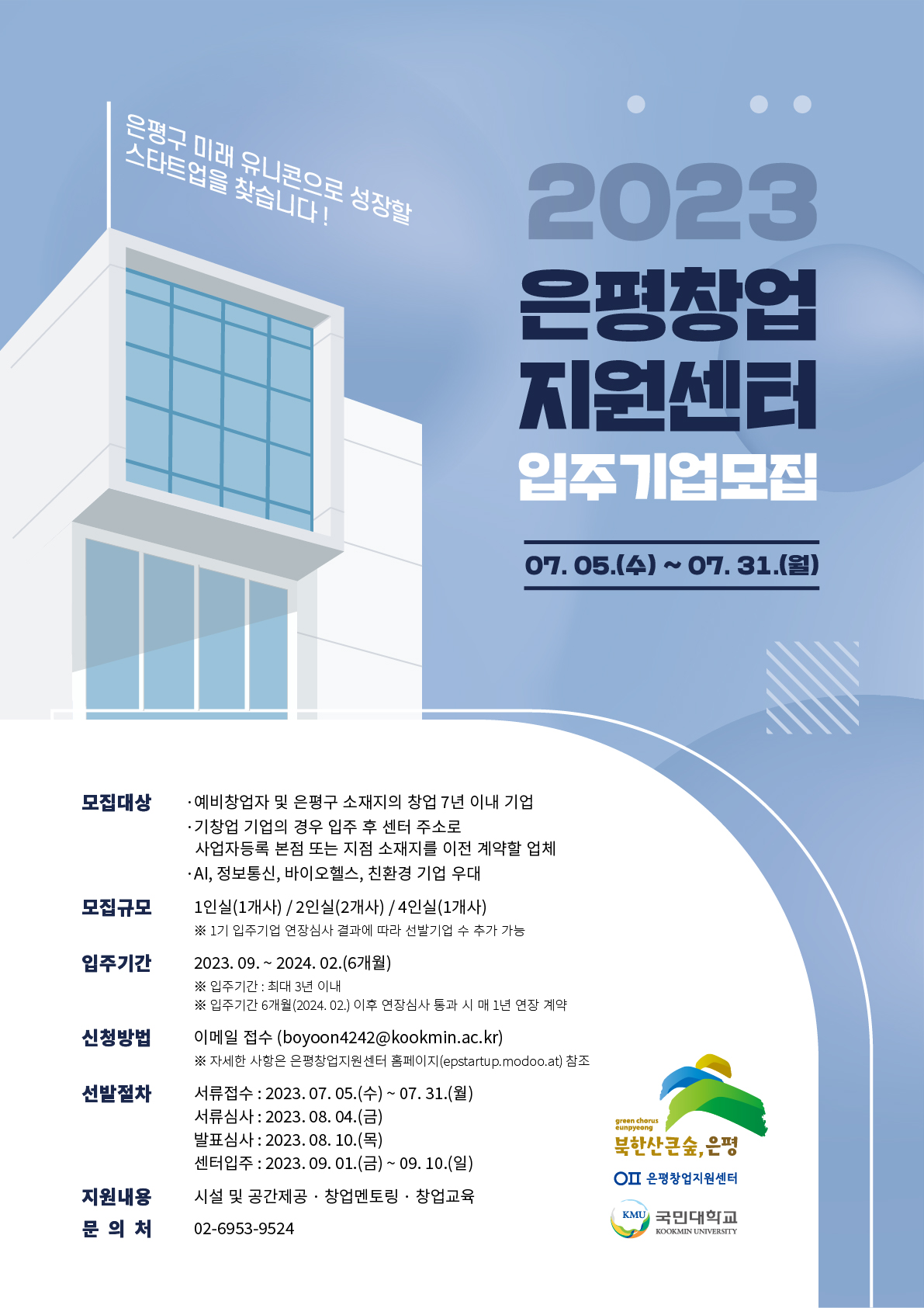 선정발표 : 2023년 8월 11일(금) 17:00 개별 통보(이메일)