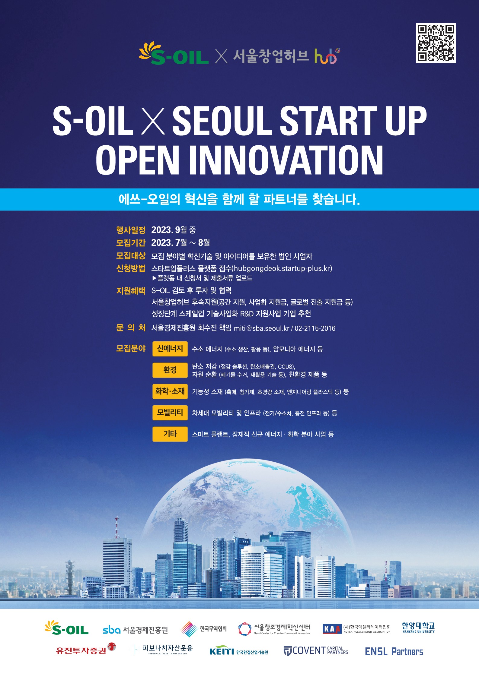 「2023년도 S-OIL x 서울창업허브 투자오픈이노베이션」 참가기업 모집 공고