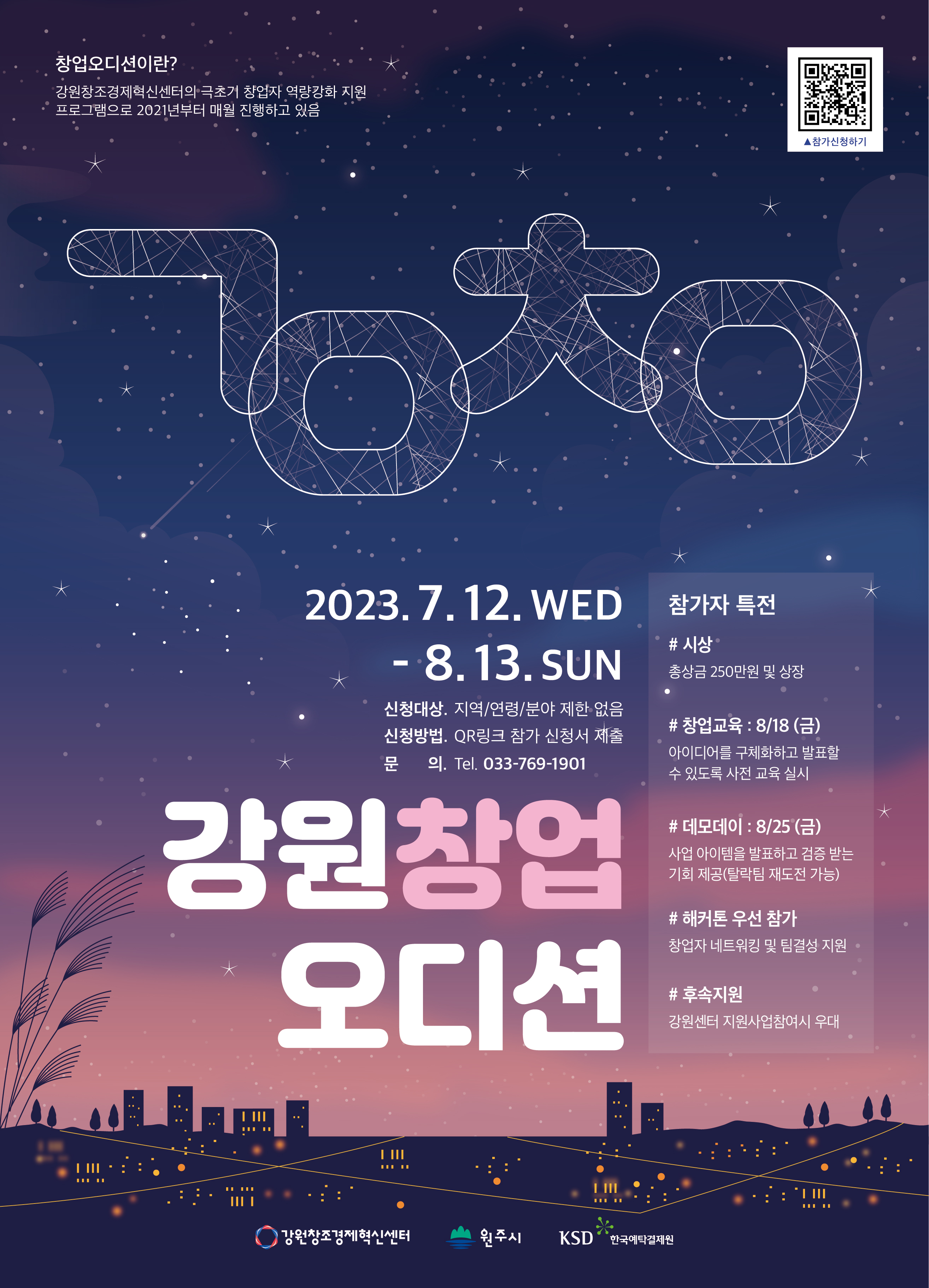 8월 교육과 데모데이 행사는 강원도 원주시 강원창조경제혁신센터에서 진행됩니다.