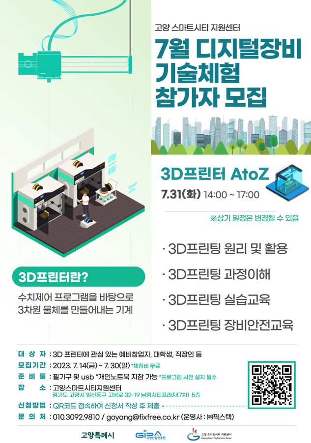 - 모집장소 : [고양 스마트시티 지원센터]경기도 고양시 일산동구 고봉로 32-19 503호 고양 스마트시티 지원센터 5층
