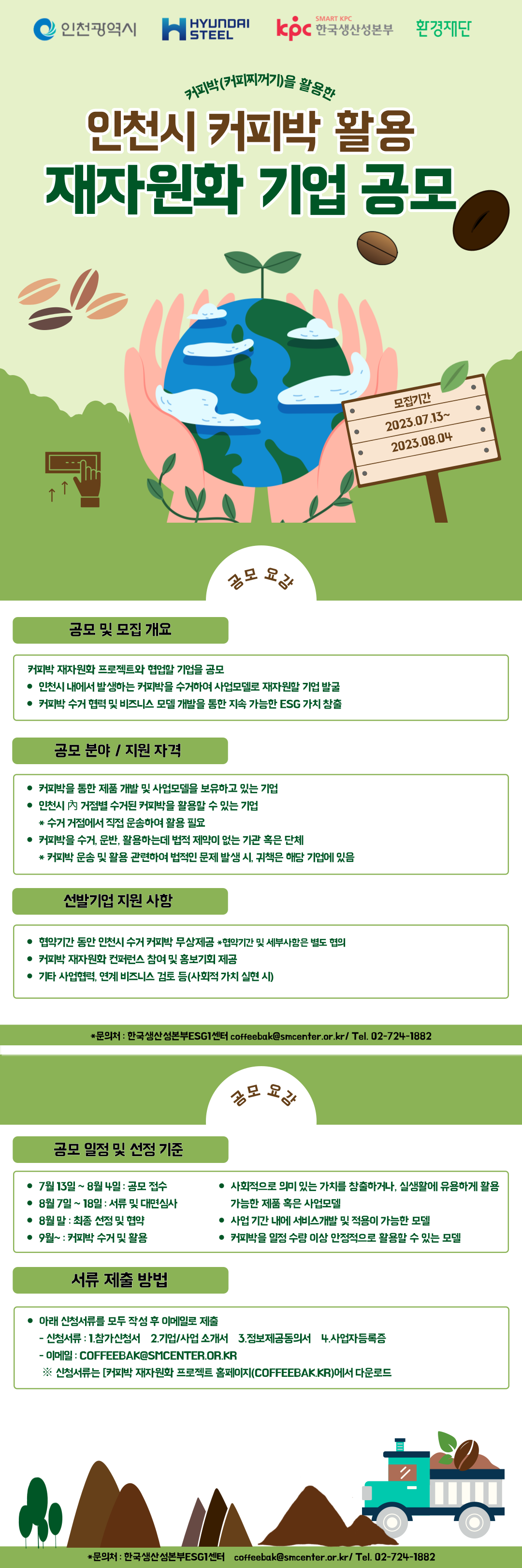 · 협약기간 동안 인천시 수거 커피박 무상제공 *협약기간 및 세부사항은 별도 합의