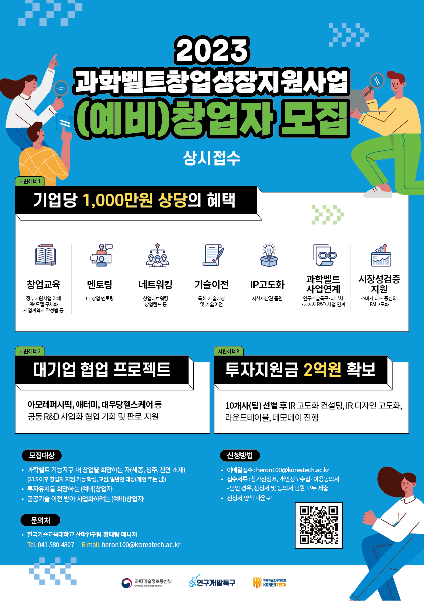 과학벨트 기능지구(천안, 청주, 세종)에 창업을 희망하는 예비창업자
