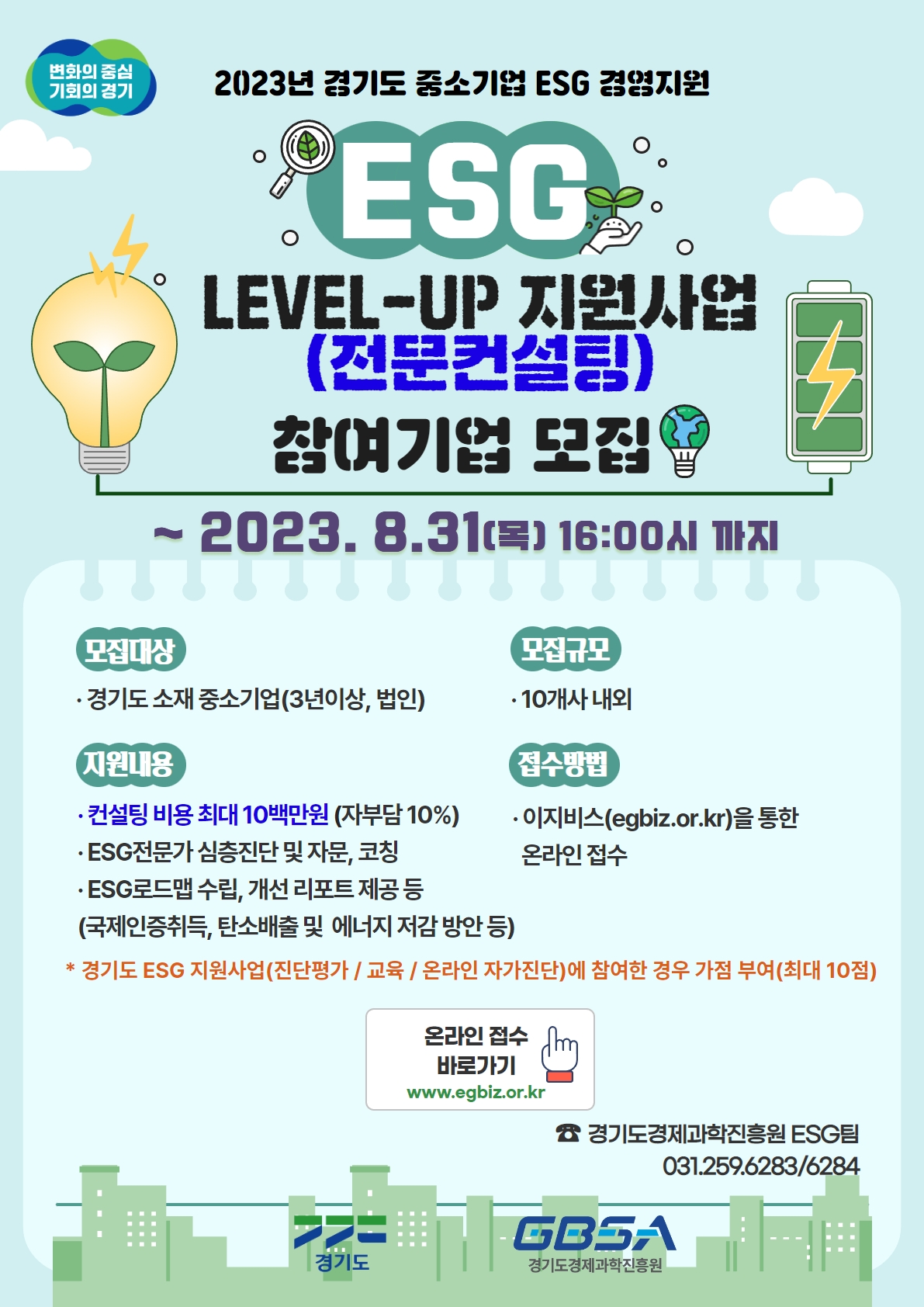 ESG 경영 전반에 관한 전문컨설팅 지원(자부담 10%)