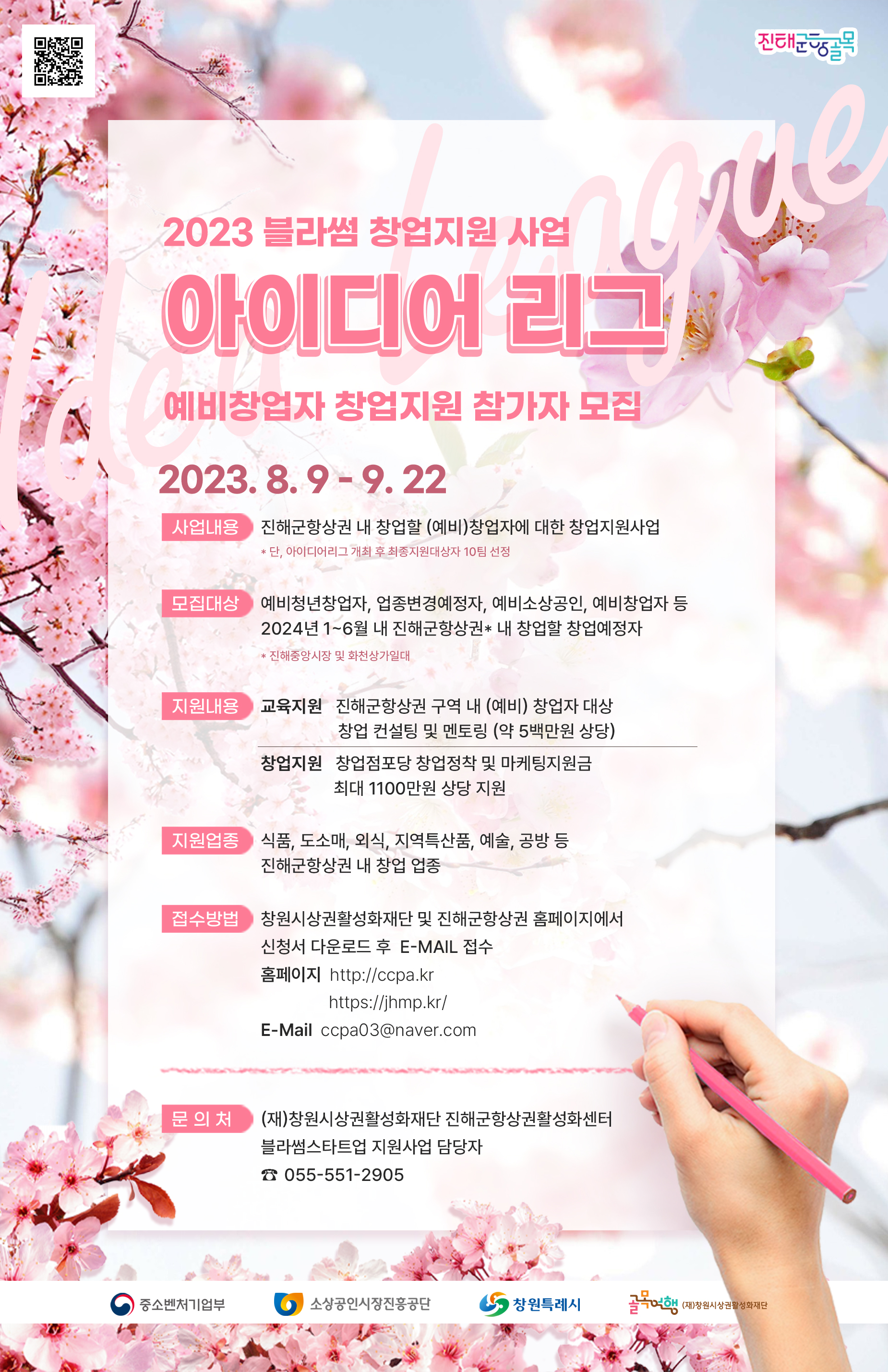 (재)창원시상권활성화재단 진해군항상권활성화센터 블라썸스타트업 지원사업 담당자 (055-551-2905)