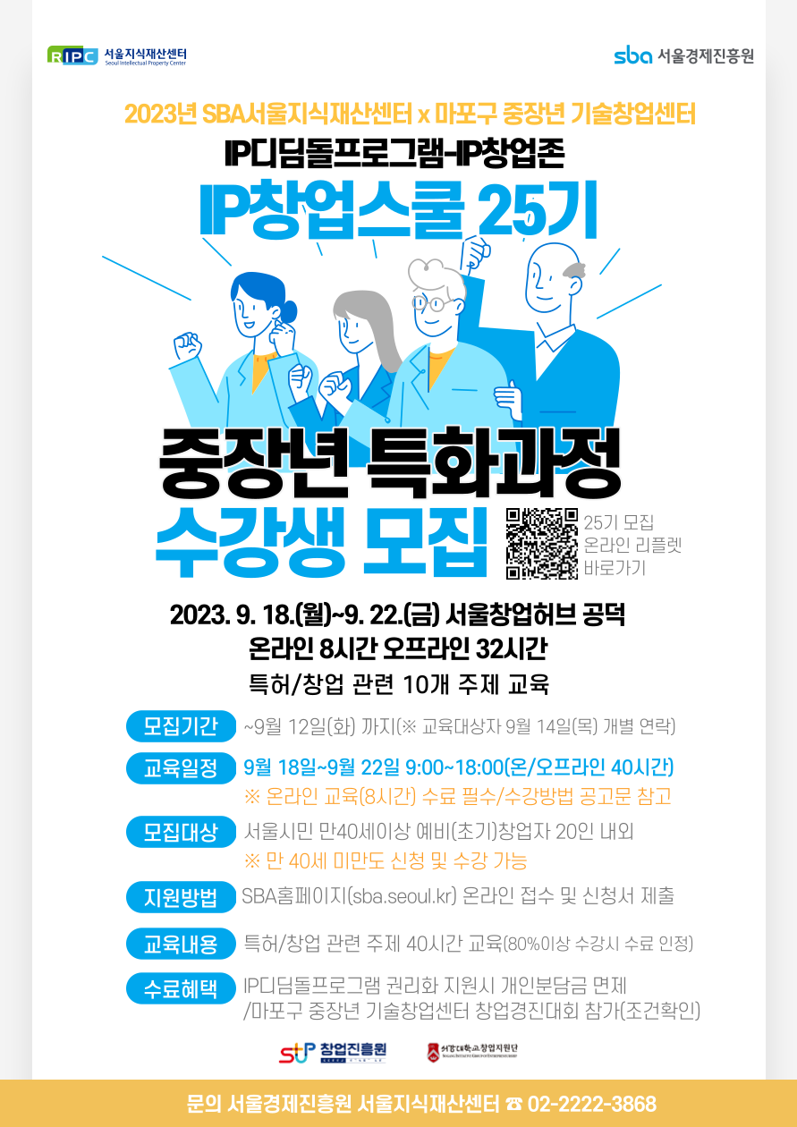 IP디딤돌프로그램-IP창업존 ‘IP창업스쿨’ 2023년 4기(25기) 중장년 특화과정