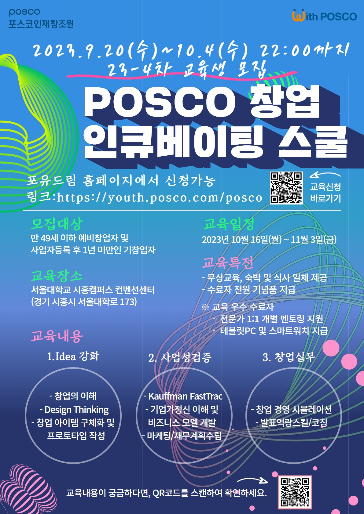 홈페이지 : http://youth.posco.com/posco/edu/index.php?mod=incubator&pag=icb01#khwhay