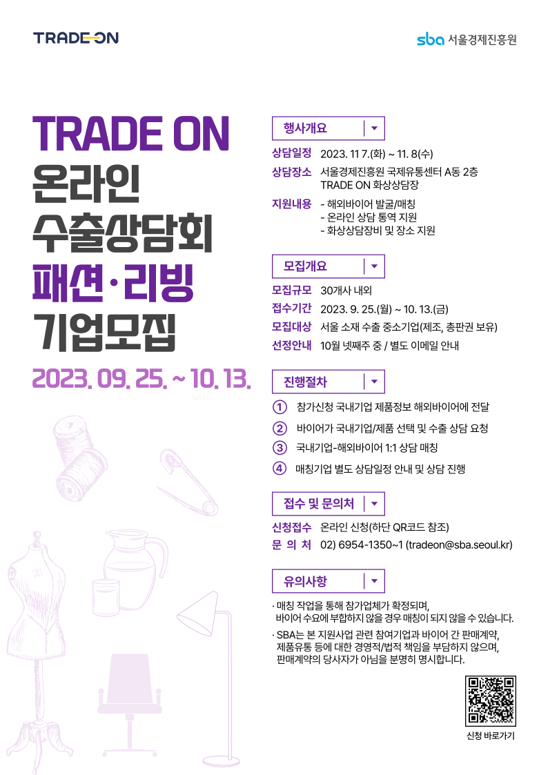 서울 소재 패션·리빙 분야 분야 수출 중소기업(제조, 총판권 보유)