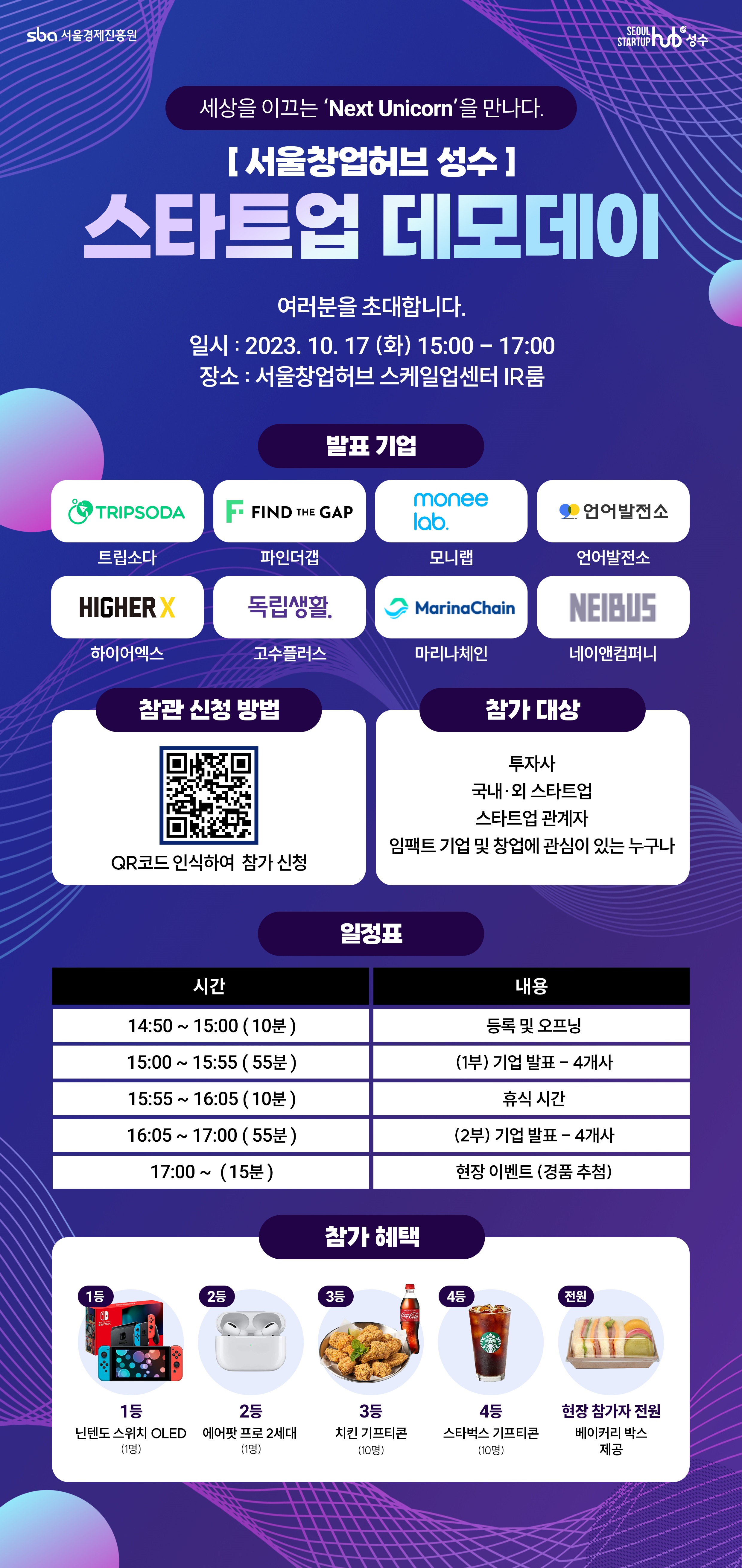 장소: 서울창업허브 스케일업센터 IR룸(서울특별시 강남구 테헤란로7길 22 2관)