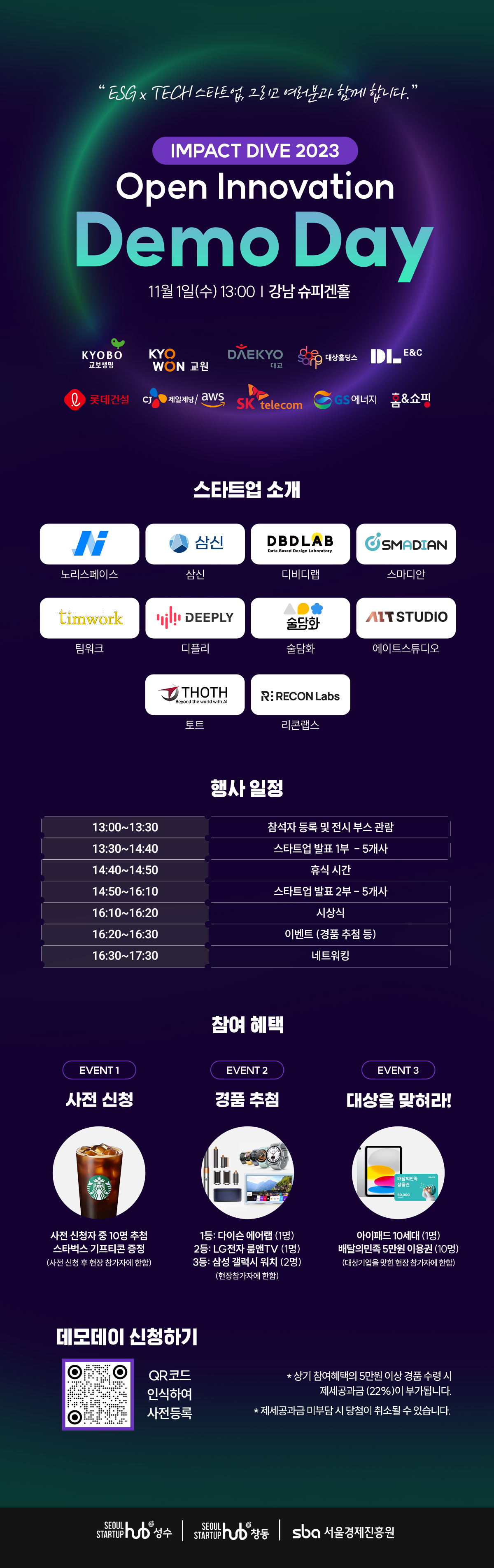 서울창업허브 성수×창동 IMPACT DIVE 2023 오픈이노베이션 데모데이