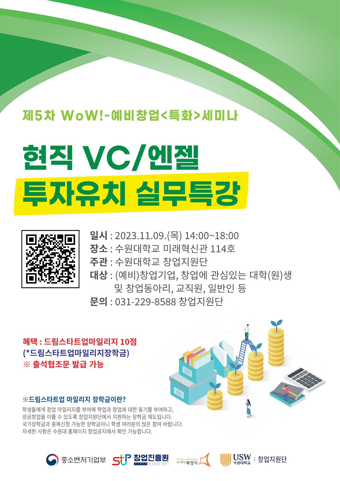 2023년 예비창업패키지 제5차 WoW!-예비창업<특화>세미나(현직 VC/엔젤 투자유치 실무특강)