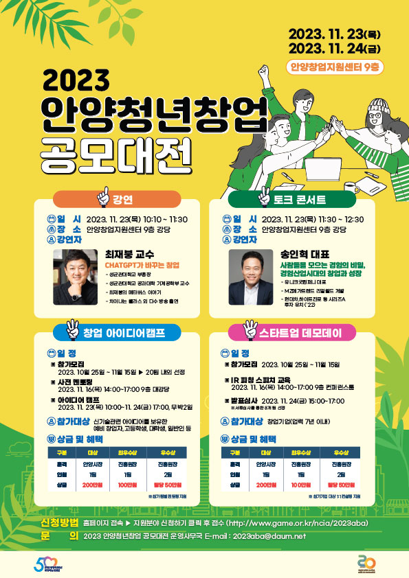 - 장소 : 안양창업지원센터 9층 컨퍼런스홀
