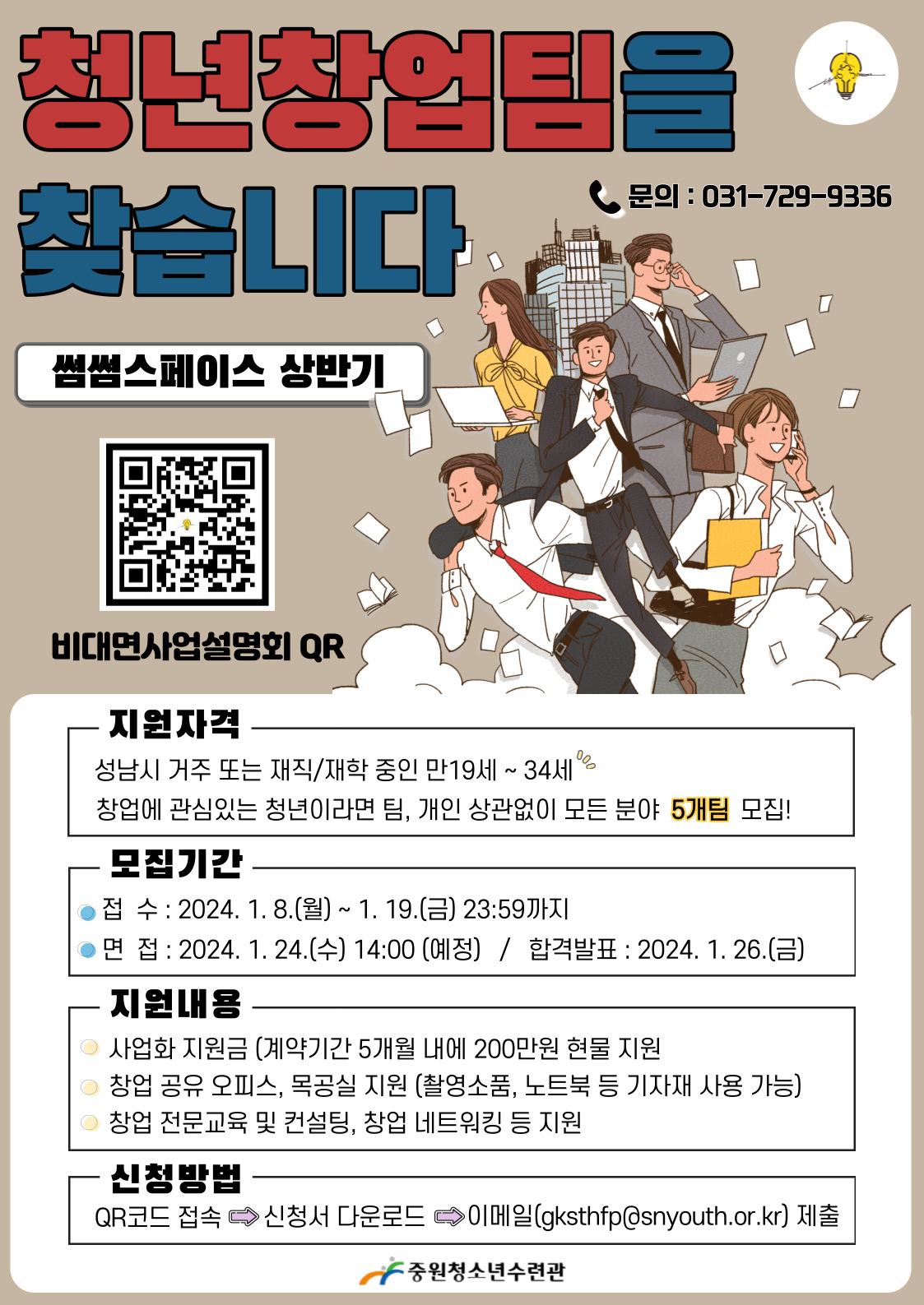 - 메일제목: [썸썸스페이스/예비창업] 팀명_대표자이름 으로 작성하여 제출