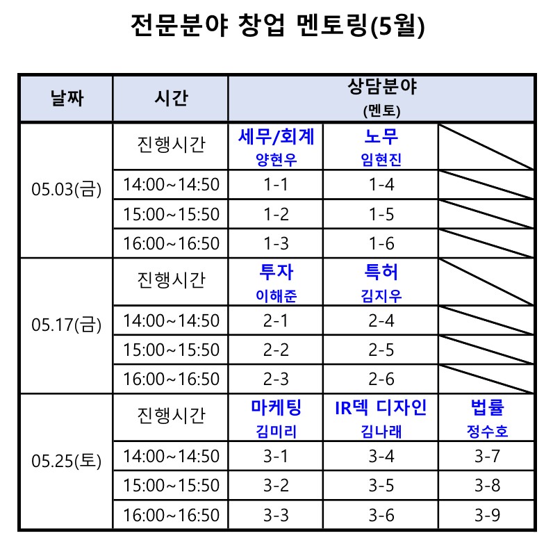 ※ 멘토링 선정 여부는 멘토링 진행 하루 전 일괄 문자 발송 예정