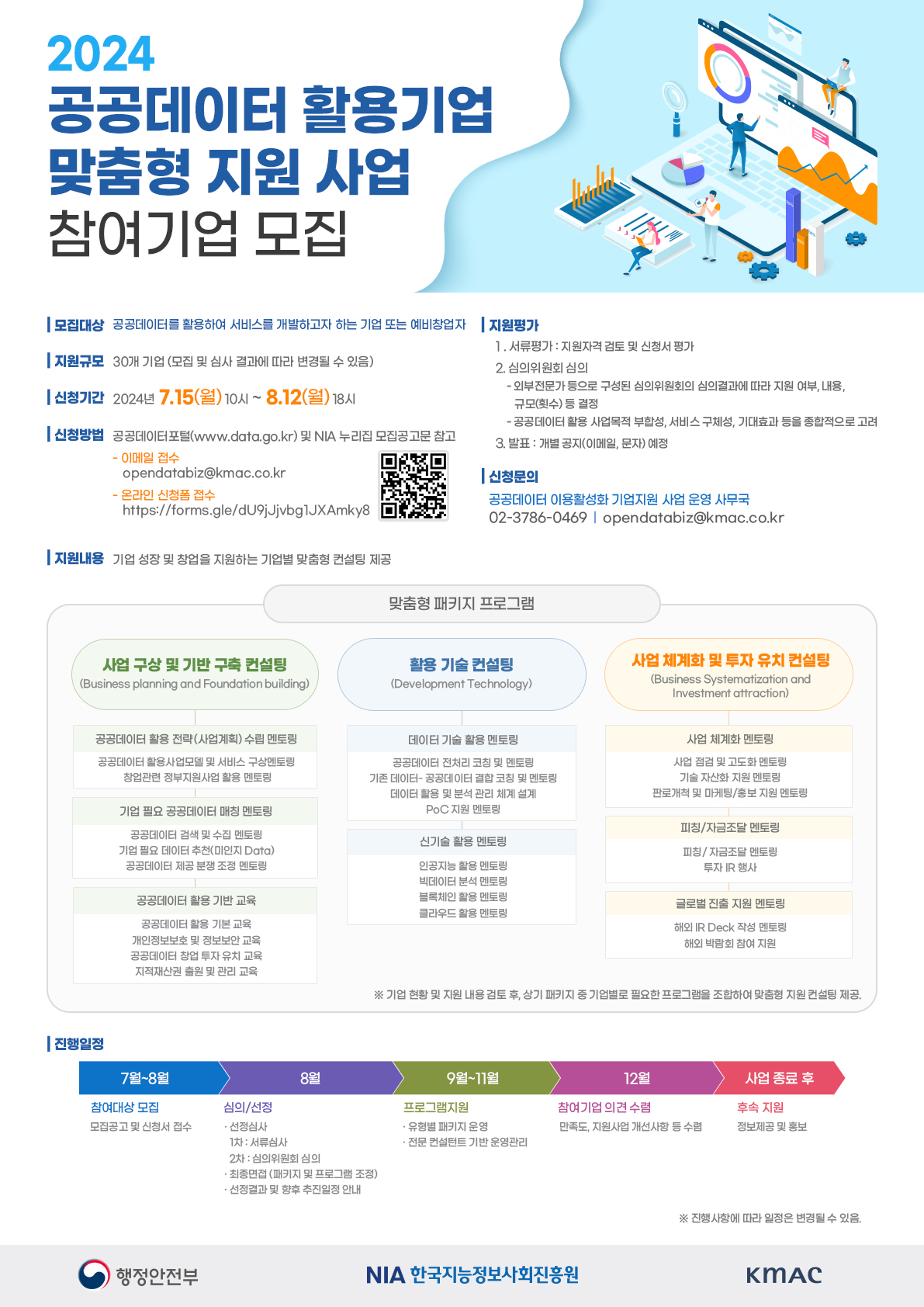 - 7~8월 : 공공데이터포털, NIA누리집을 통해 신청 양식 다운로드, 이메일 접수