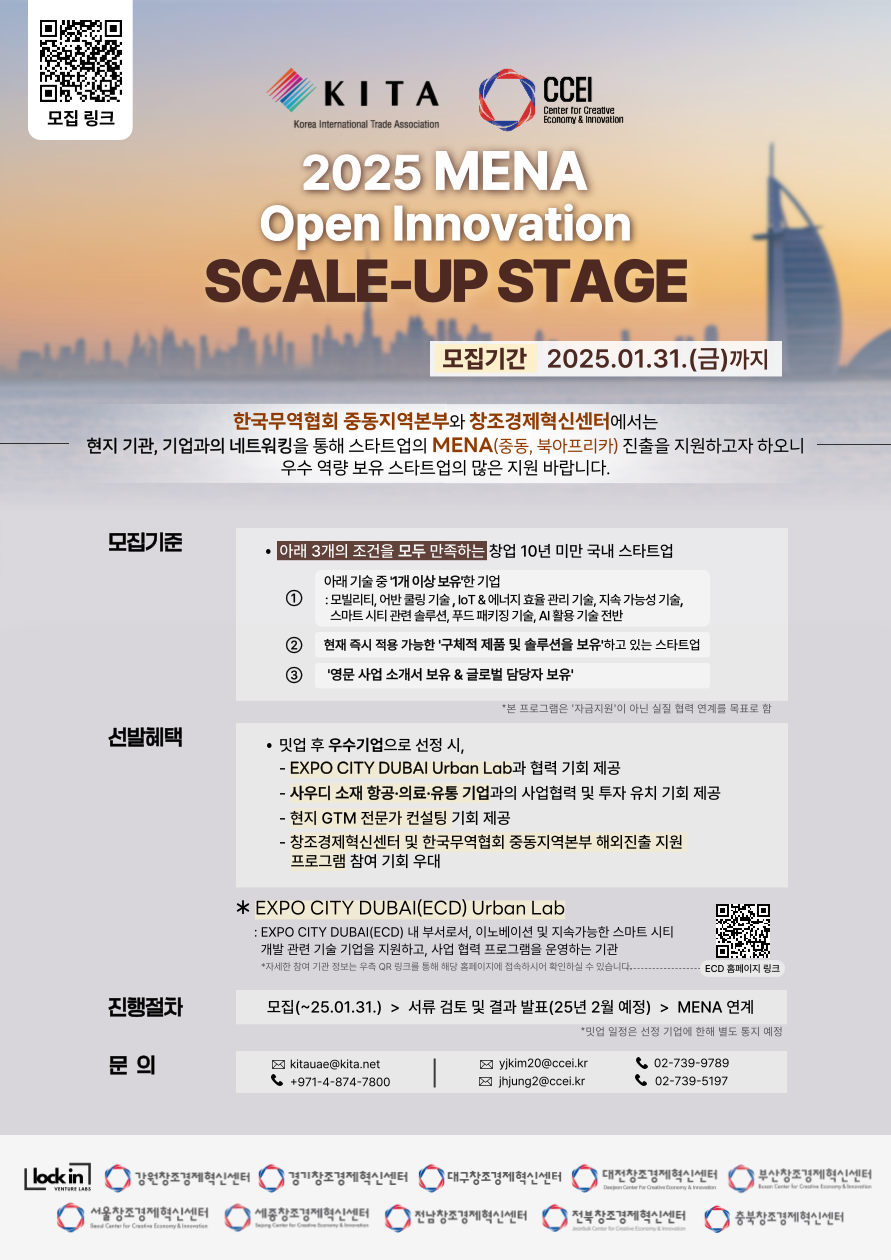 모집(~25.01.31) > 서류 검토 및 결과 발표(25년 2월 예정) > MENA 연계