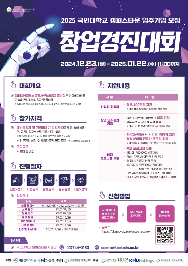 2025 국민대학교 캠퍼스타운 입주기업 모집 창업경진대회