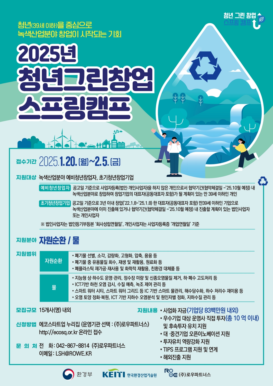녹색산업분야* 예비청년창업자, 초기청년창업기업 (자원순환 또는 물 부문)