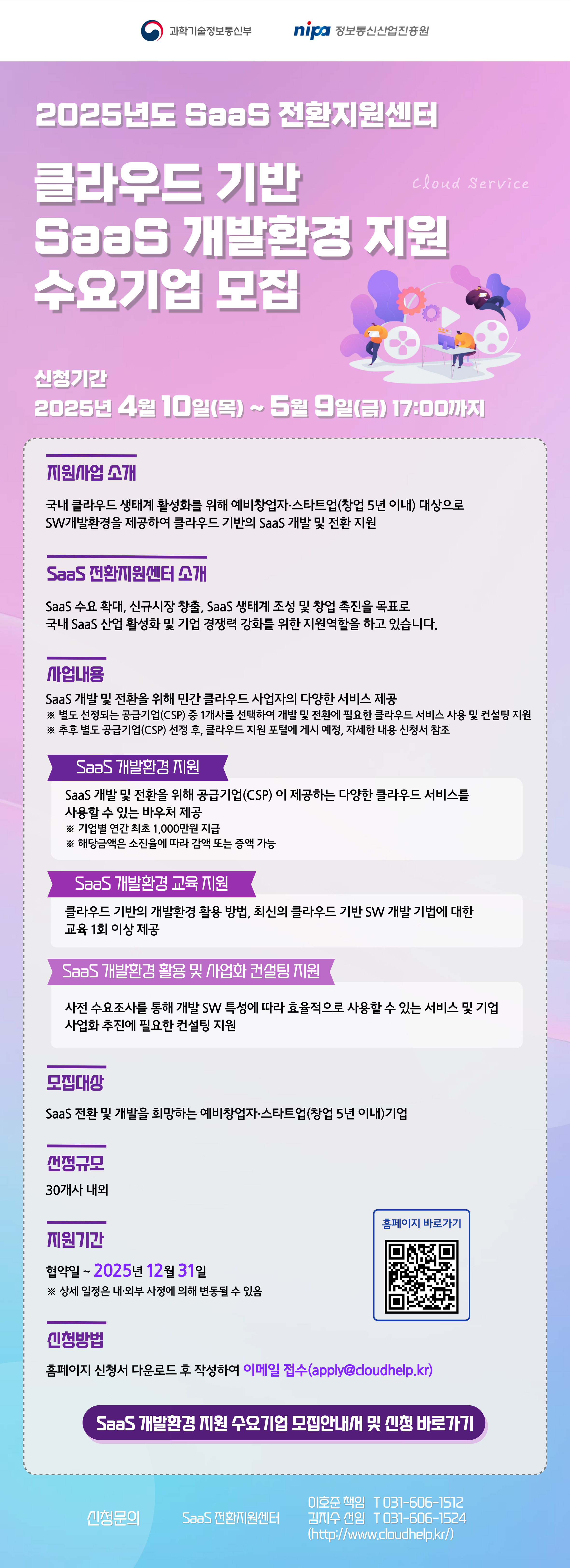 내용: SaaS 개발환경 서비스 및 기술 지원