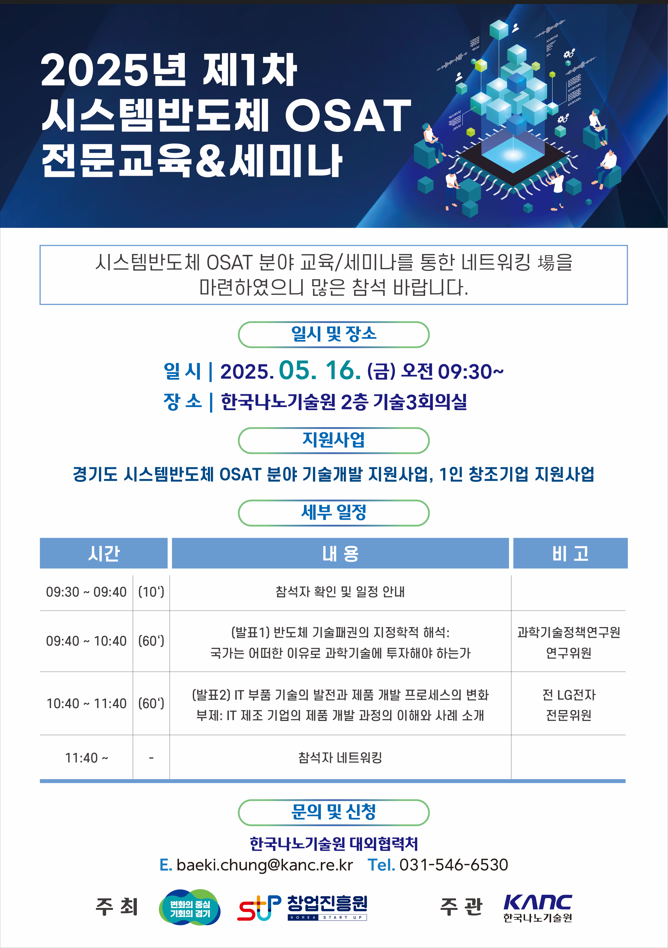 ○ 행 사 명 : 2025년 「제1차 시스템반도체 OSAT 전문교육·세미나」